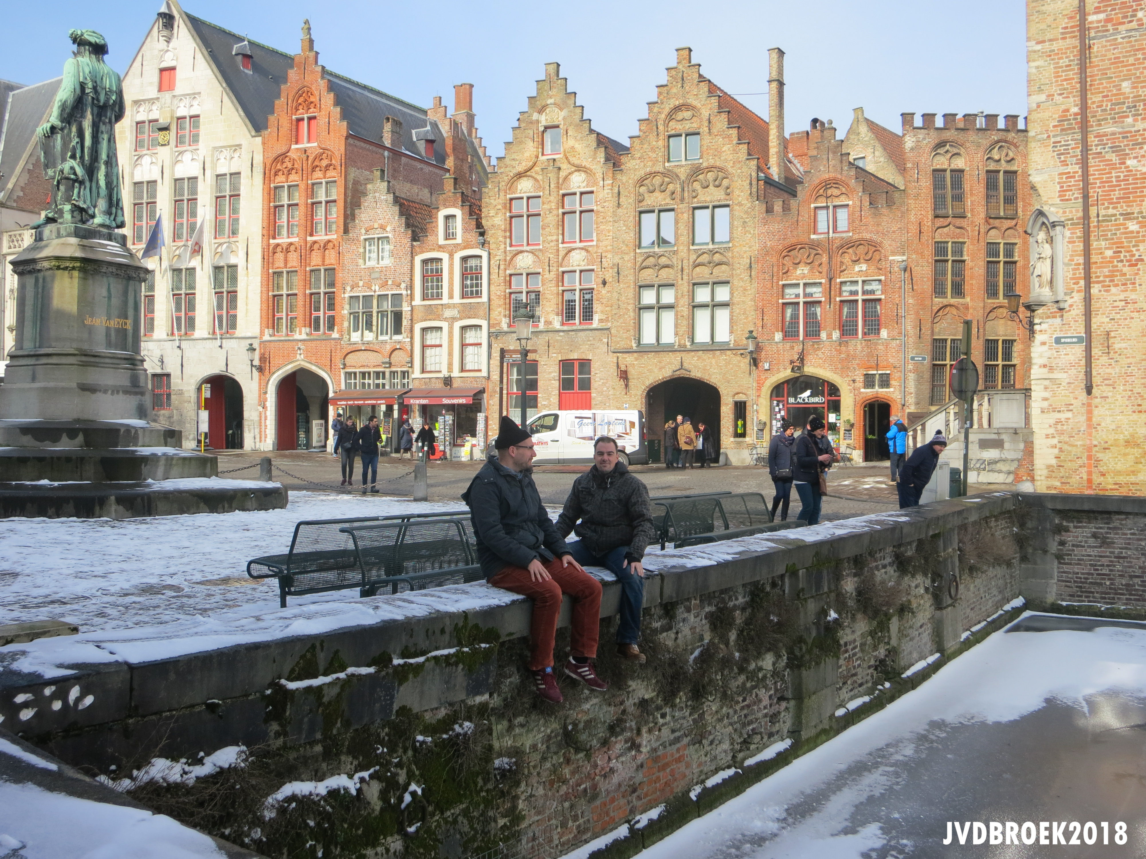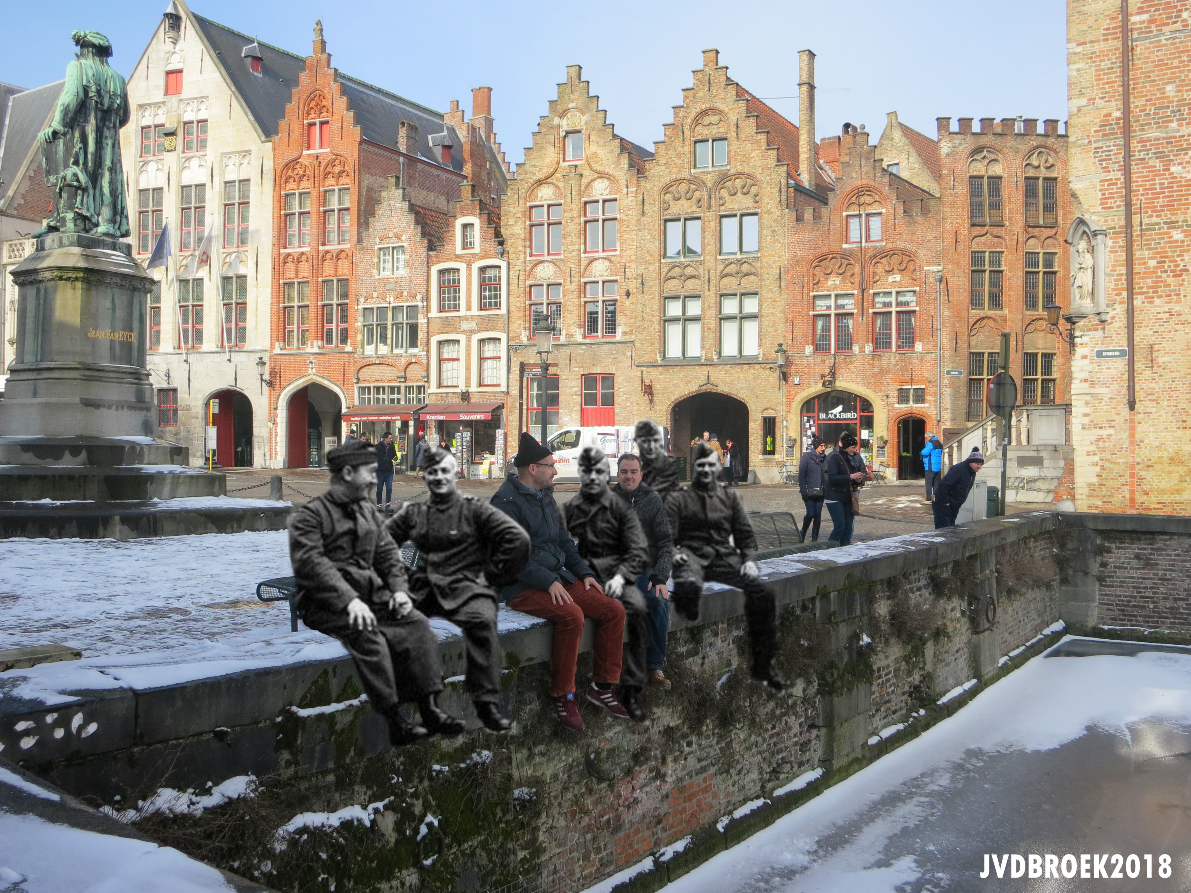 Last week me (with the hat) and and some friends were in Brugge and met some German guys at the Jan van Eyckplein and we made this photo.