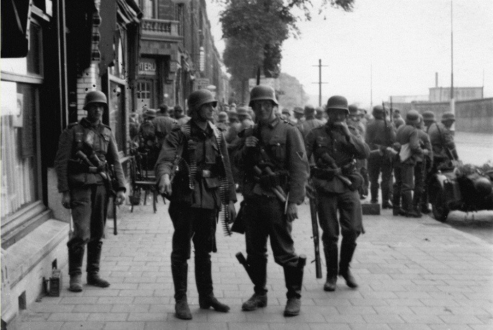 Germans in front of the “Hef bridge” at the Noordereiland in Rotterdam, during Fall Gelb May 1940.