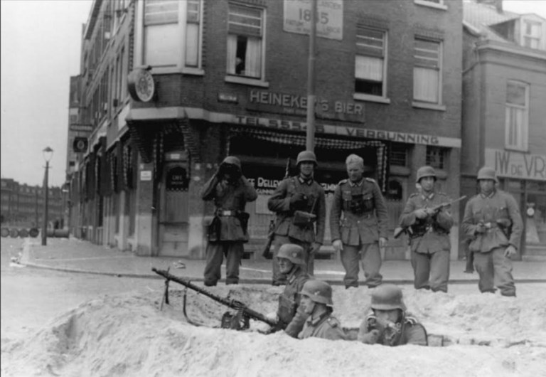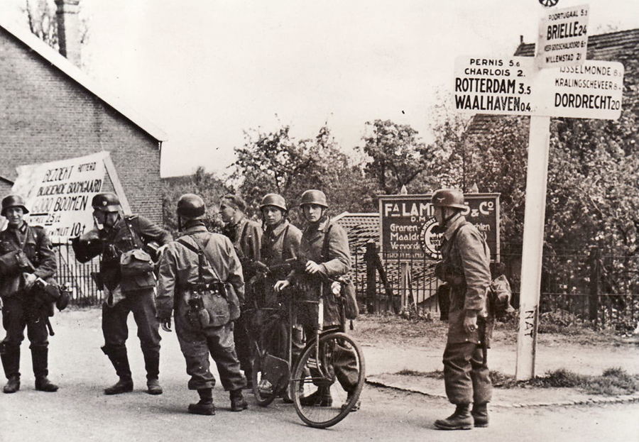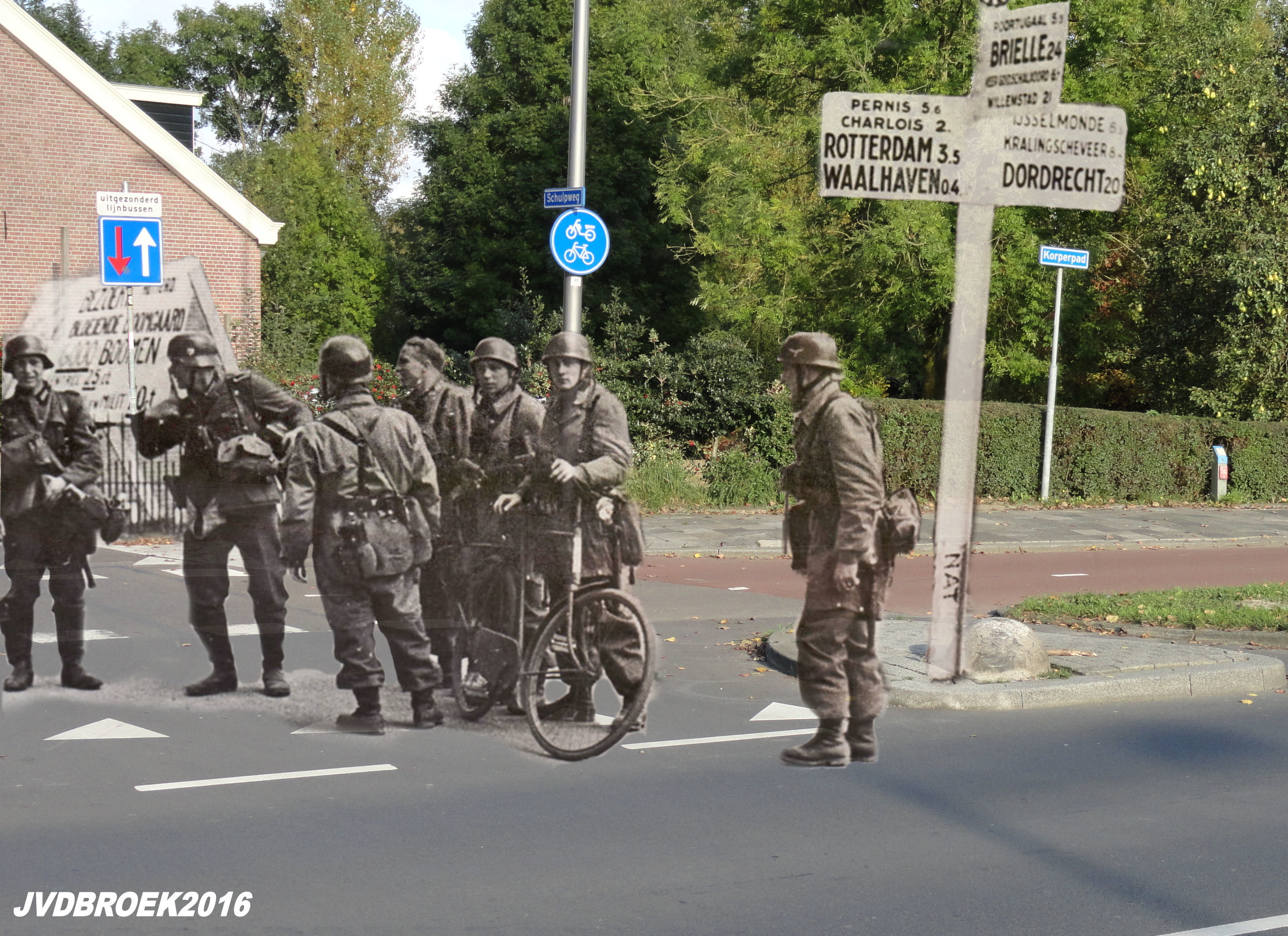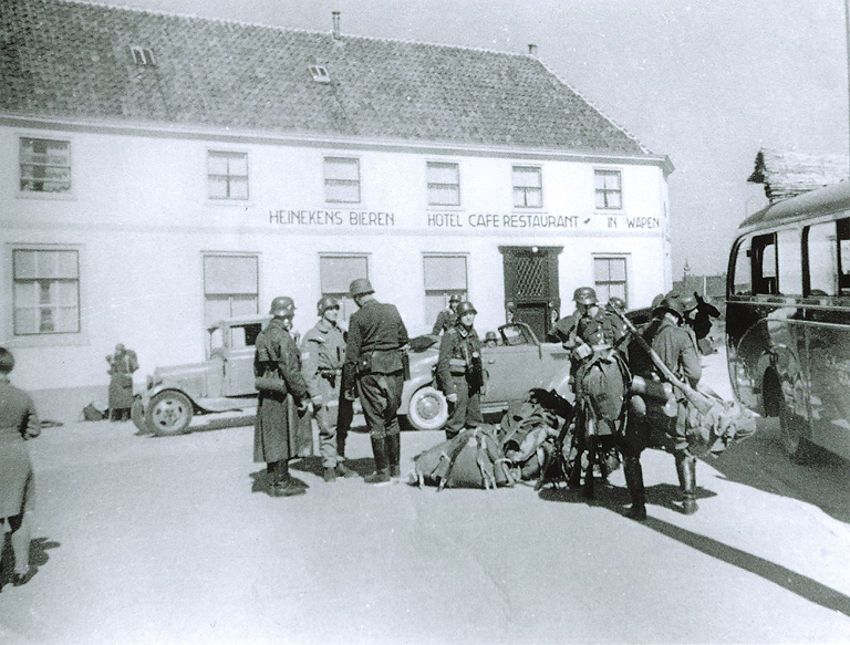 The surrender of the The Netherlands was signed in Rijsoord near Rotterdam, the Netherlands in 1940. Here we see German soldiers arriving in Rijsoord in May 1940 at the hostel “in ‘t wapen van Rijsoord”.