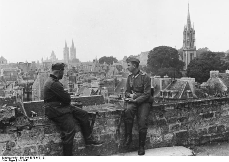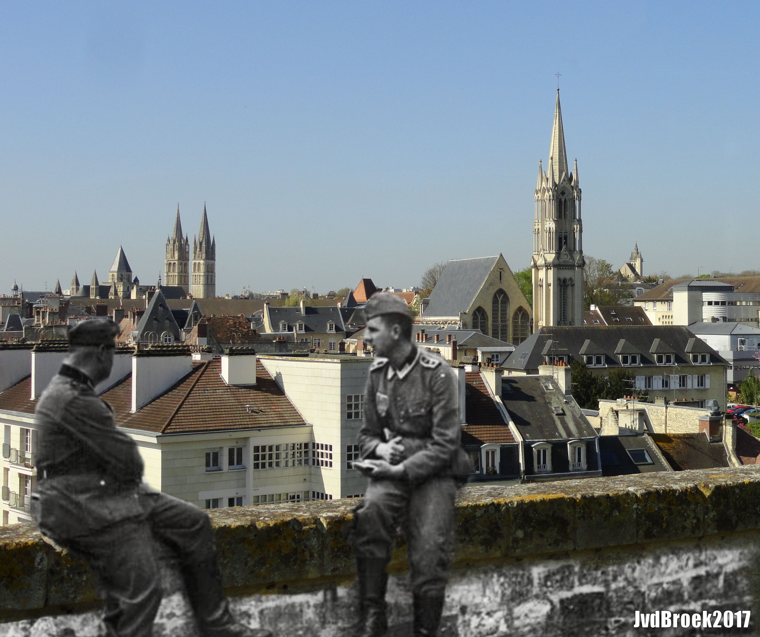 German soldiers in Caen enjoying the view from the Caen Castle in July 1940. The angle is not perfect but I had no access to the exact spot.