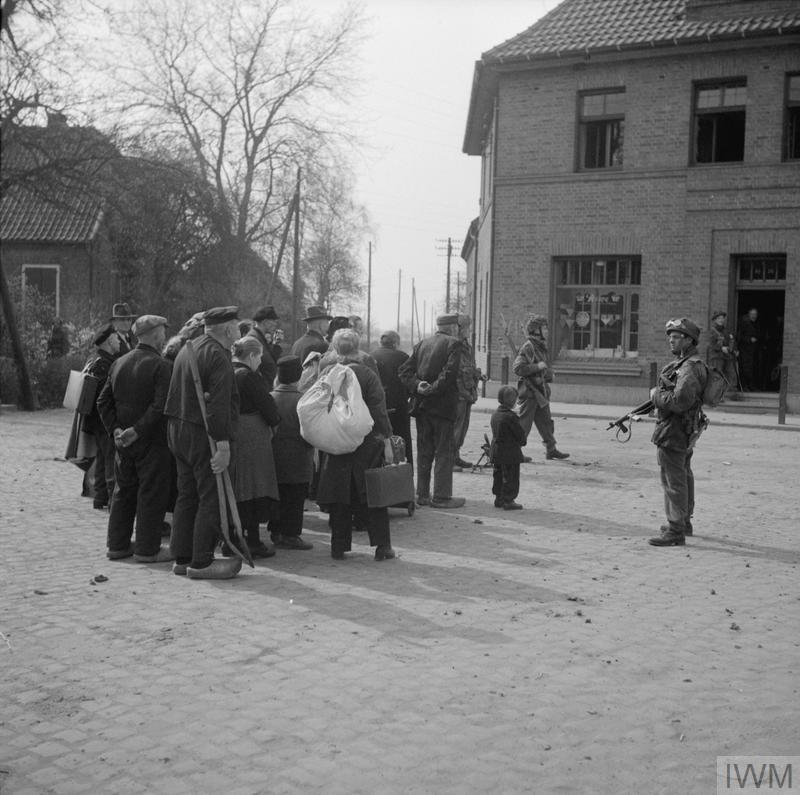 German civilians on the junction of the Diersfordter straße and the Bislicher Straße in Hamminkeln are rounded up by British airborne troops, during Operation ‘Varsity’,