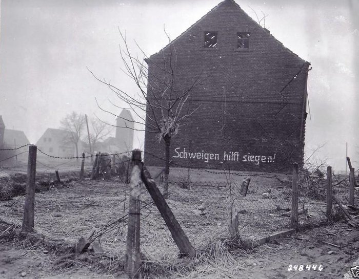 Nazi Slogan on Haus “Monig” in Vettweiss. The slogan reads: Being Silent helps to win!