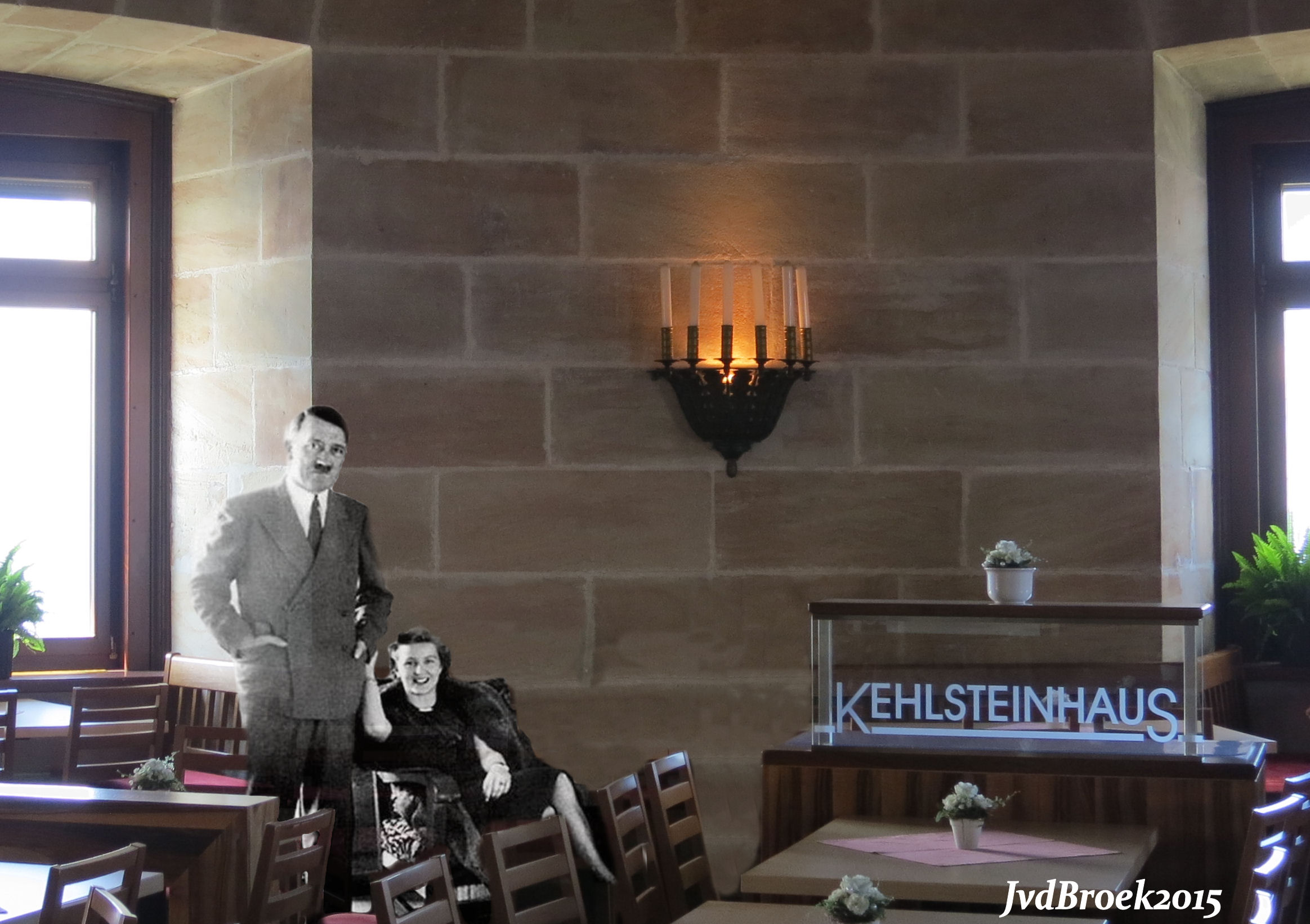 Hitler, Eva Braun, Speer and I think Goebbels between Hitler and Speer here at the Mooslahner Kopf Teahouse.