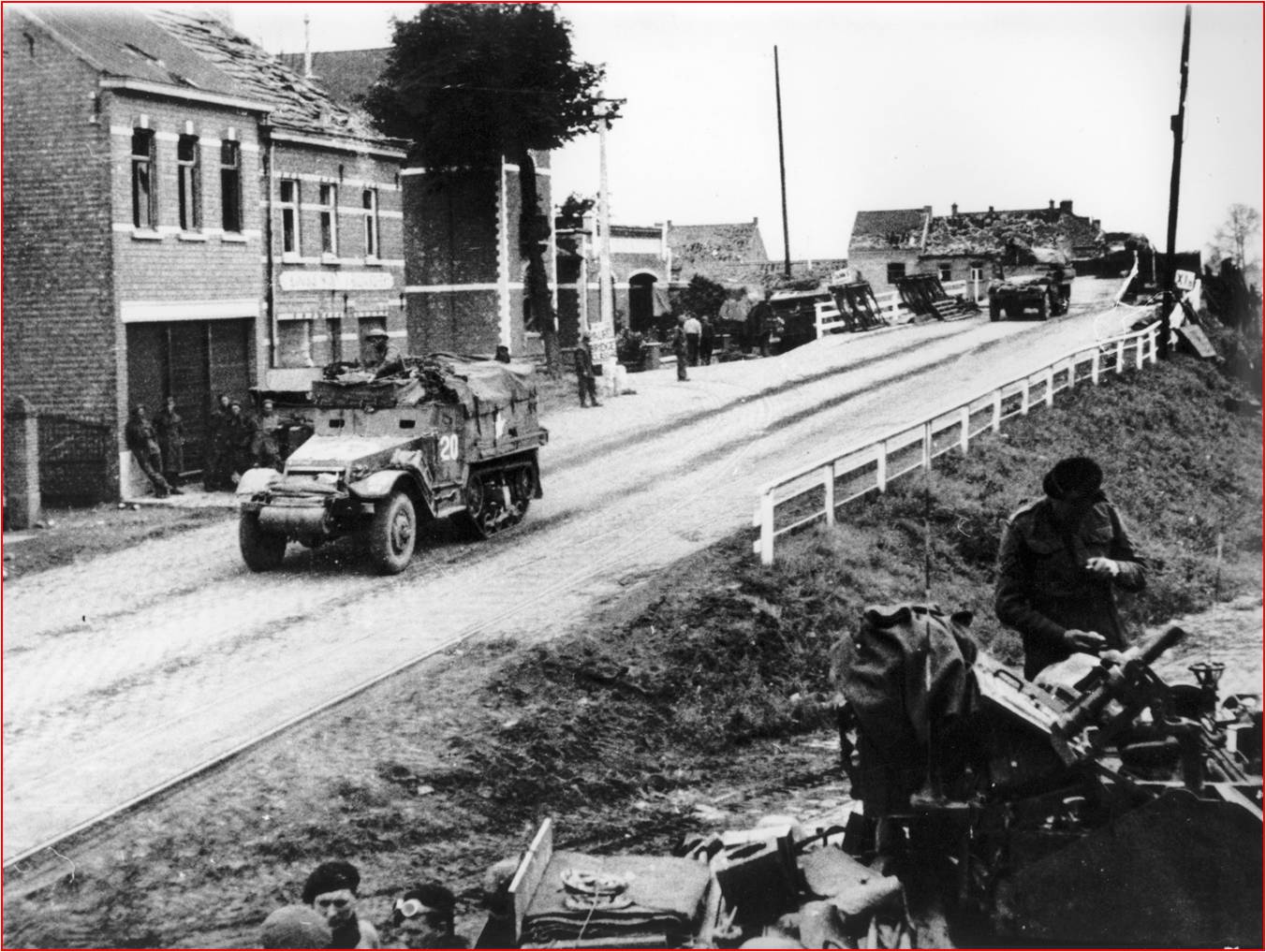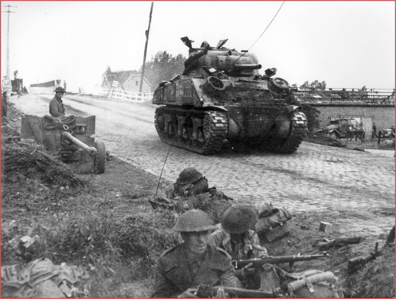 The city of Beringen, Belgium was liberated in September 1944. Here soldiers of the Welsh Guards are trying to hold the bridge.