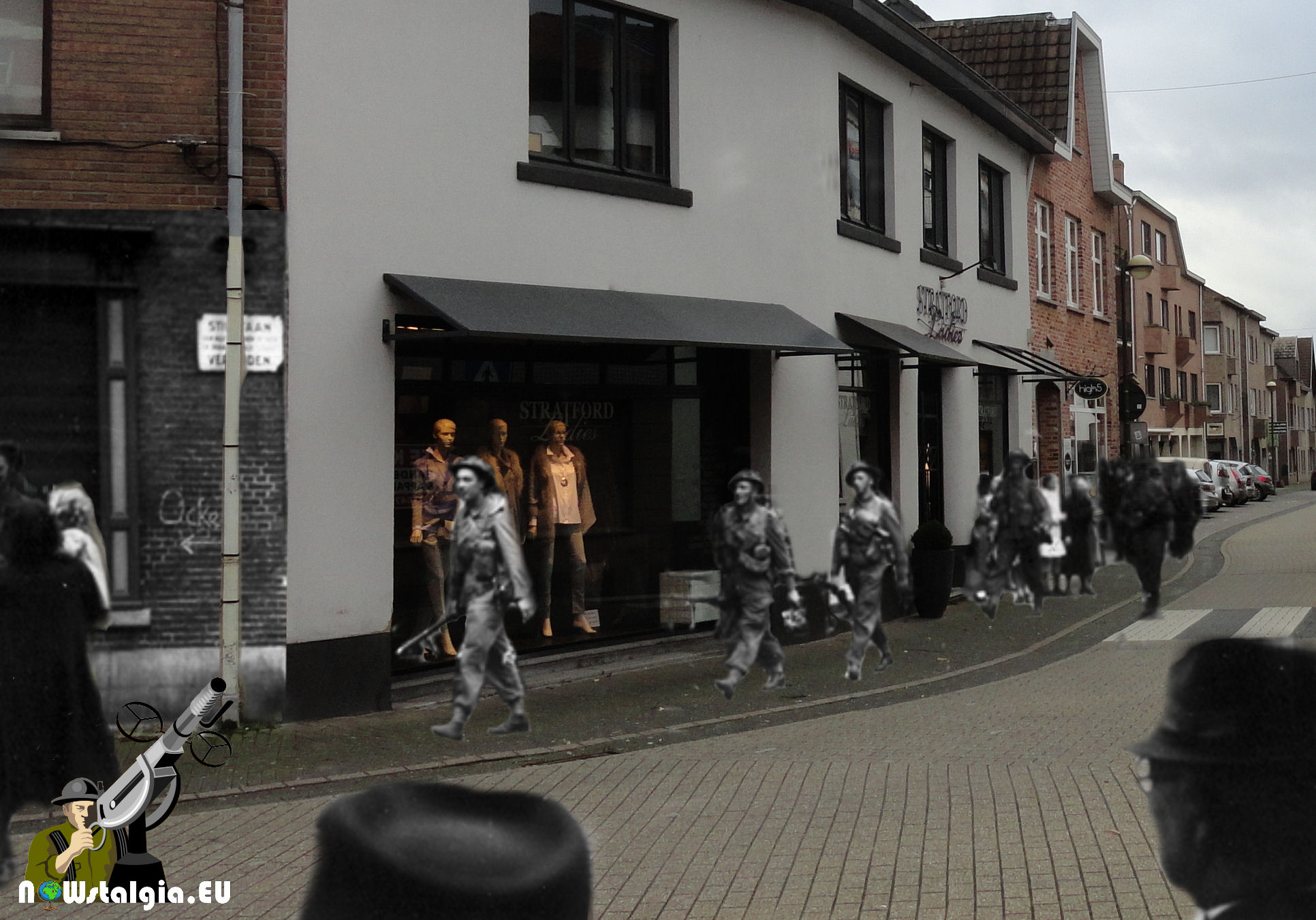 British troops in the Onze Lieve Vrouw Straat, Beringen, Belgium in 1944.