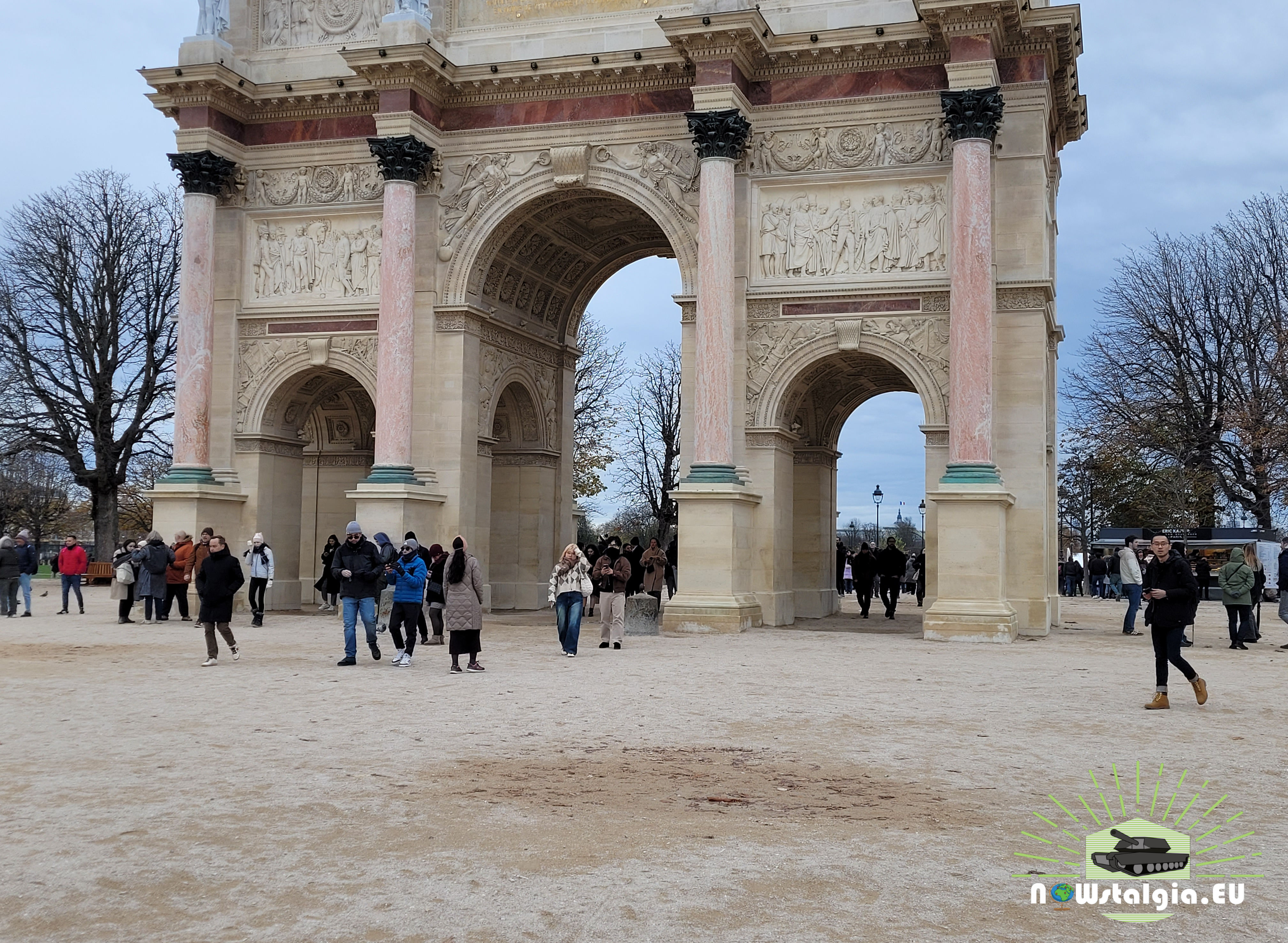 Soldiers of German Wehrmacht in front of the Arc de Triomphe du Carrousel in the occupied Paris, 1940.