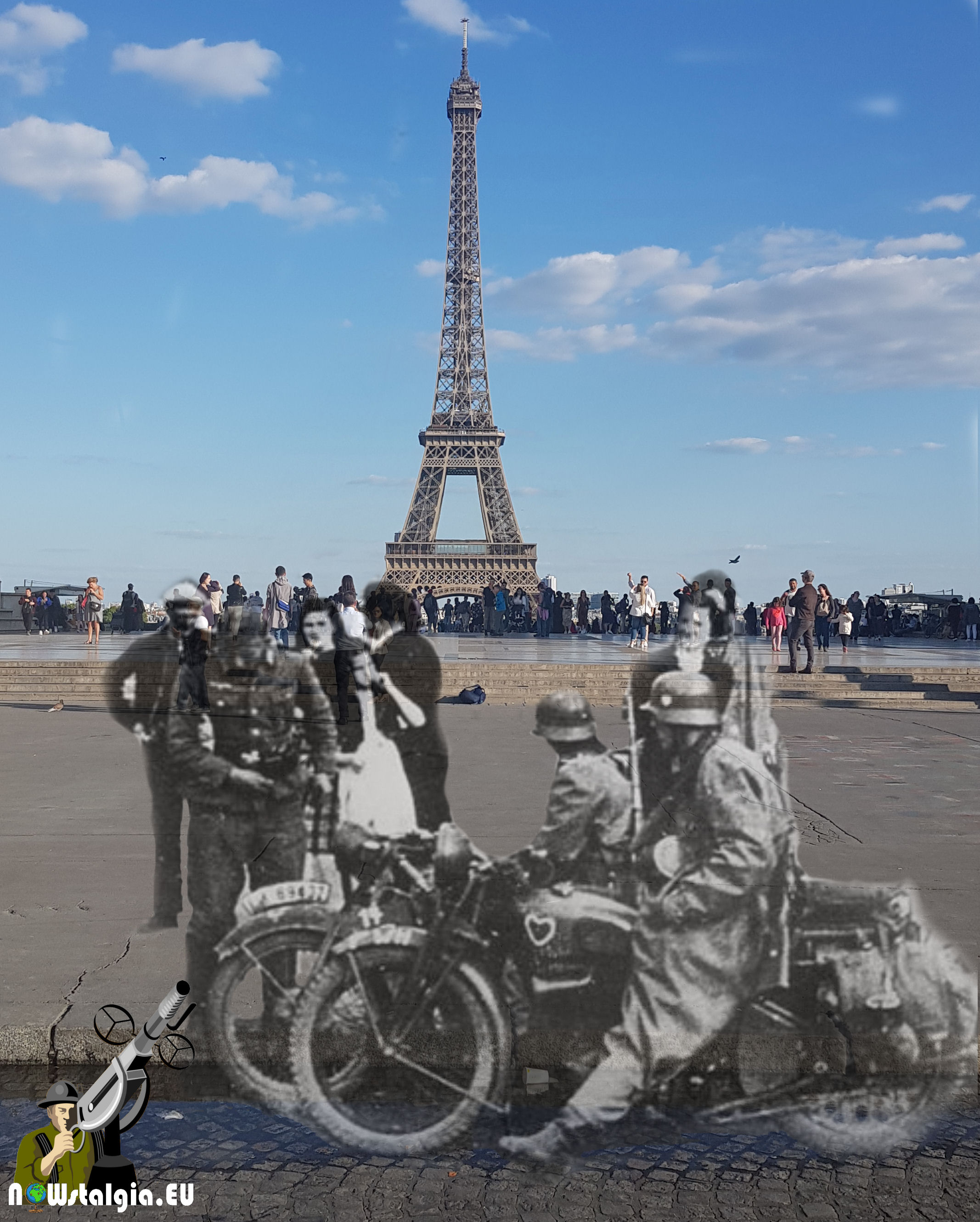 German soldiers posing in front of the Eiffeltower during the occupation of Paris.