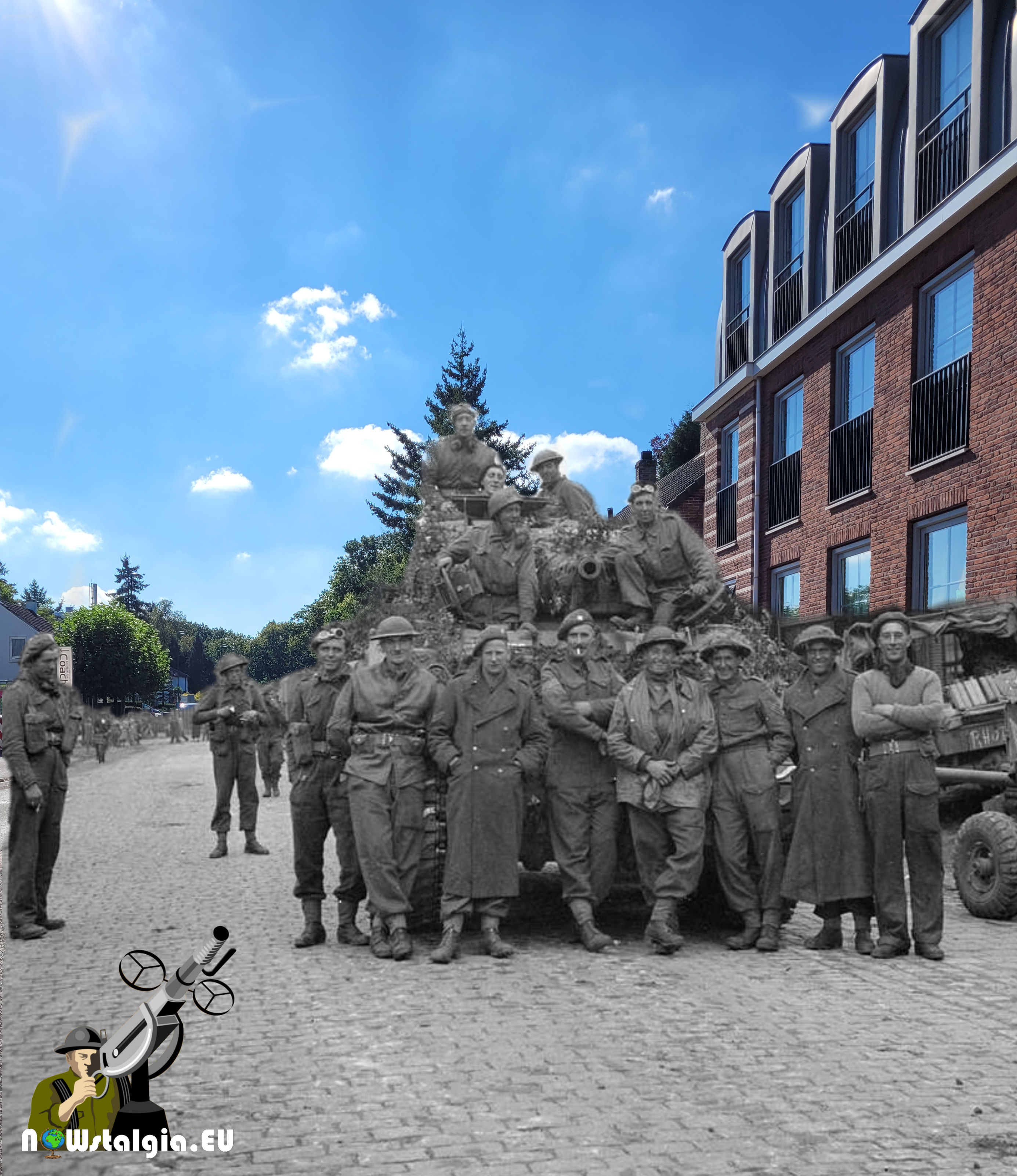 Tanks of the 8 Armoured Division in the center of Kamp Lintfort, 8 March 1945.