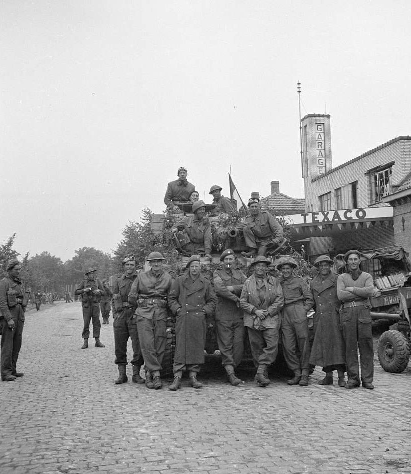 Irish guards in the main street of Aalst going towards Eindhoven, 18 September 1944.