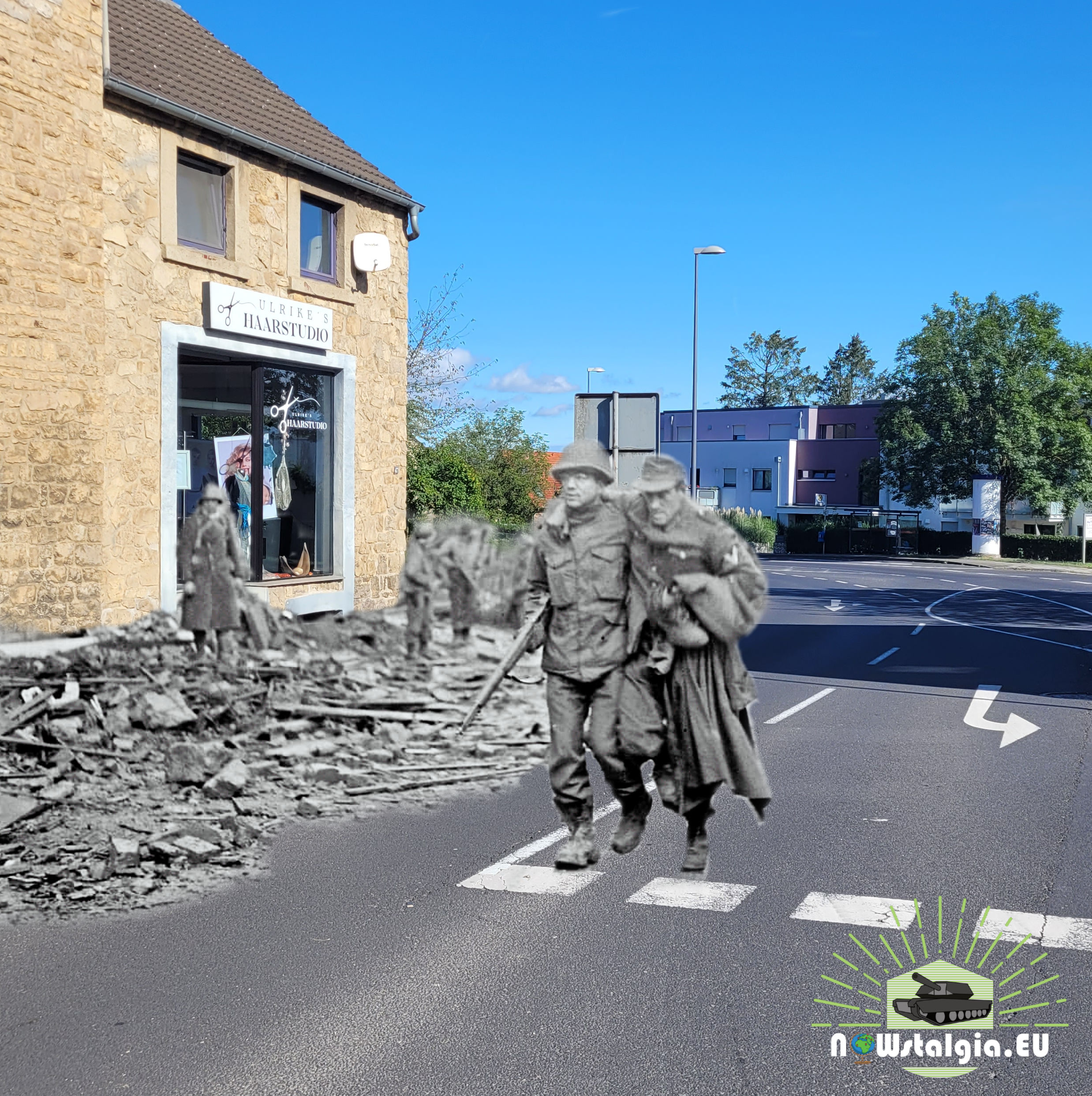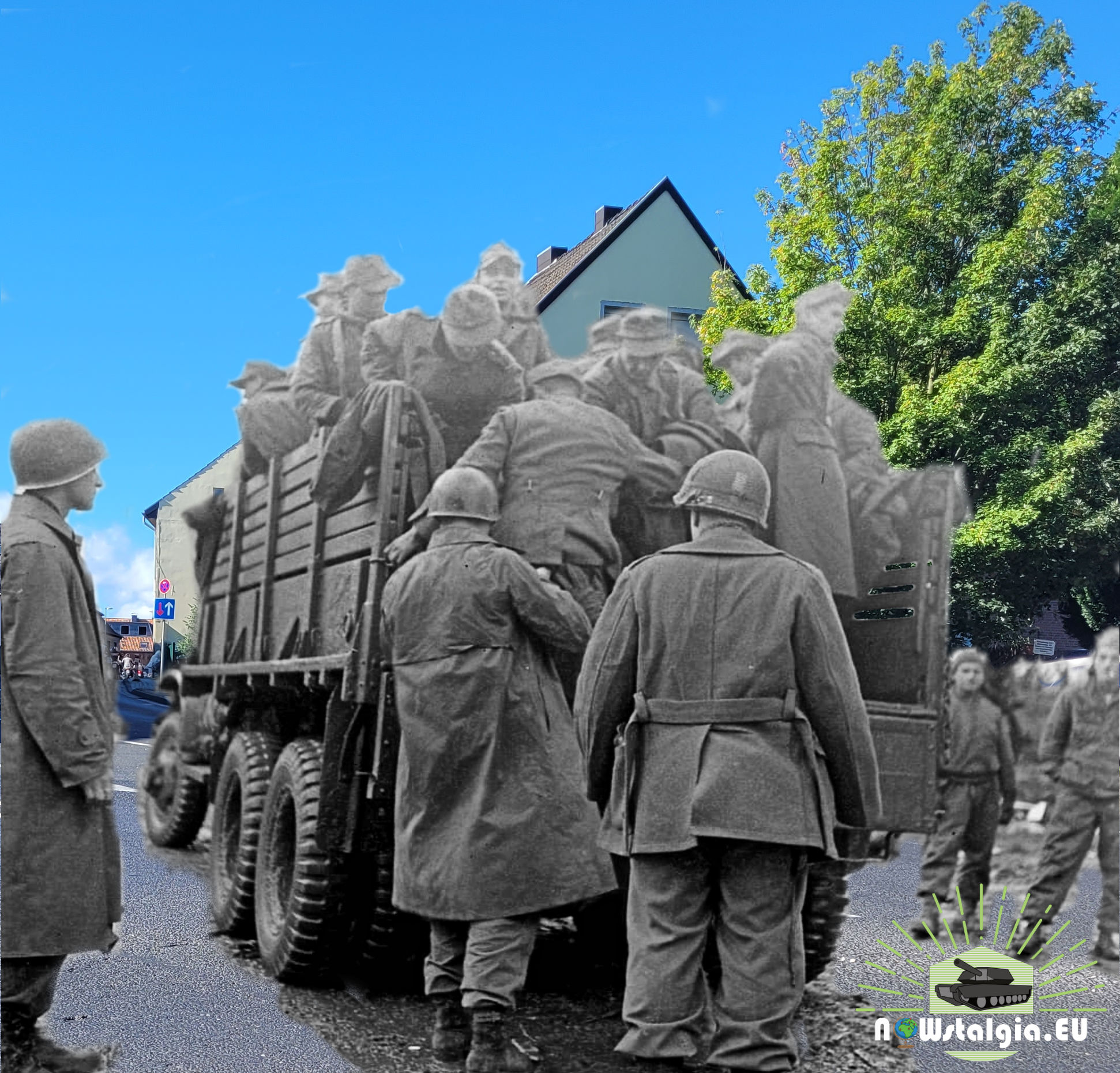Soldiers of the US 104th Infantry Division “Timberwolves leaving the city center of Stolberg in November 1944.