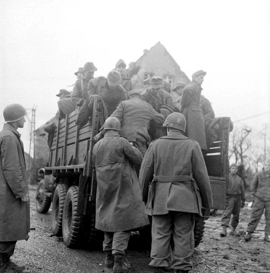 More German Prisoners of War loaded on a truck in Gressenich Germany – November 1944.