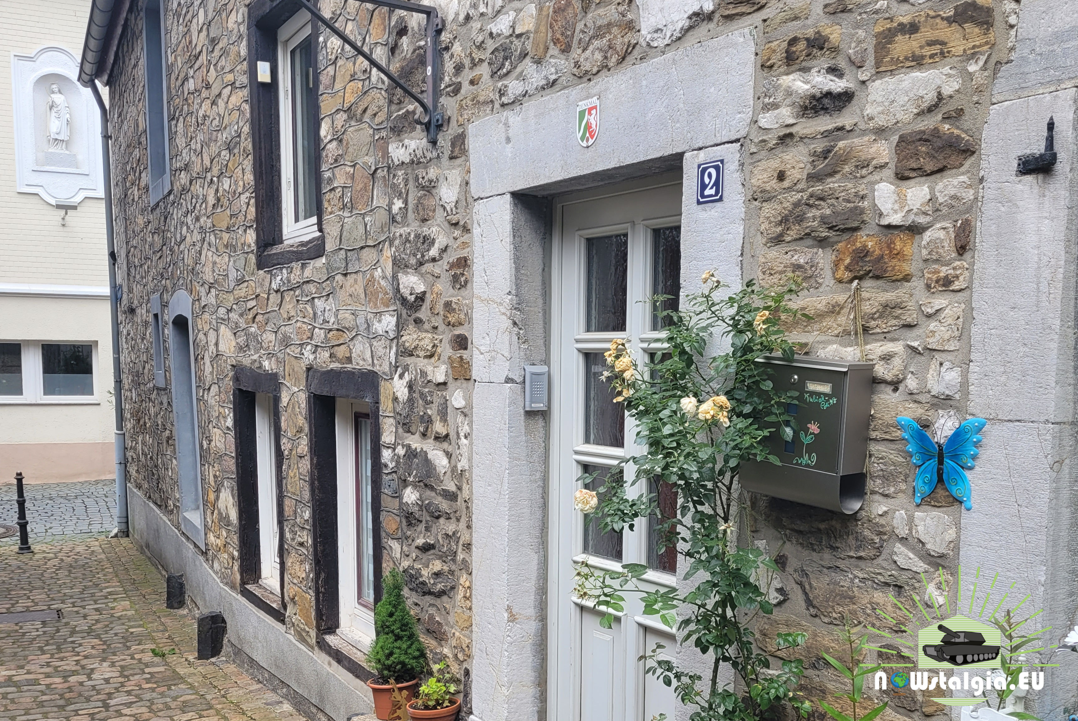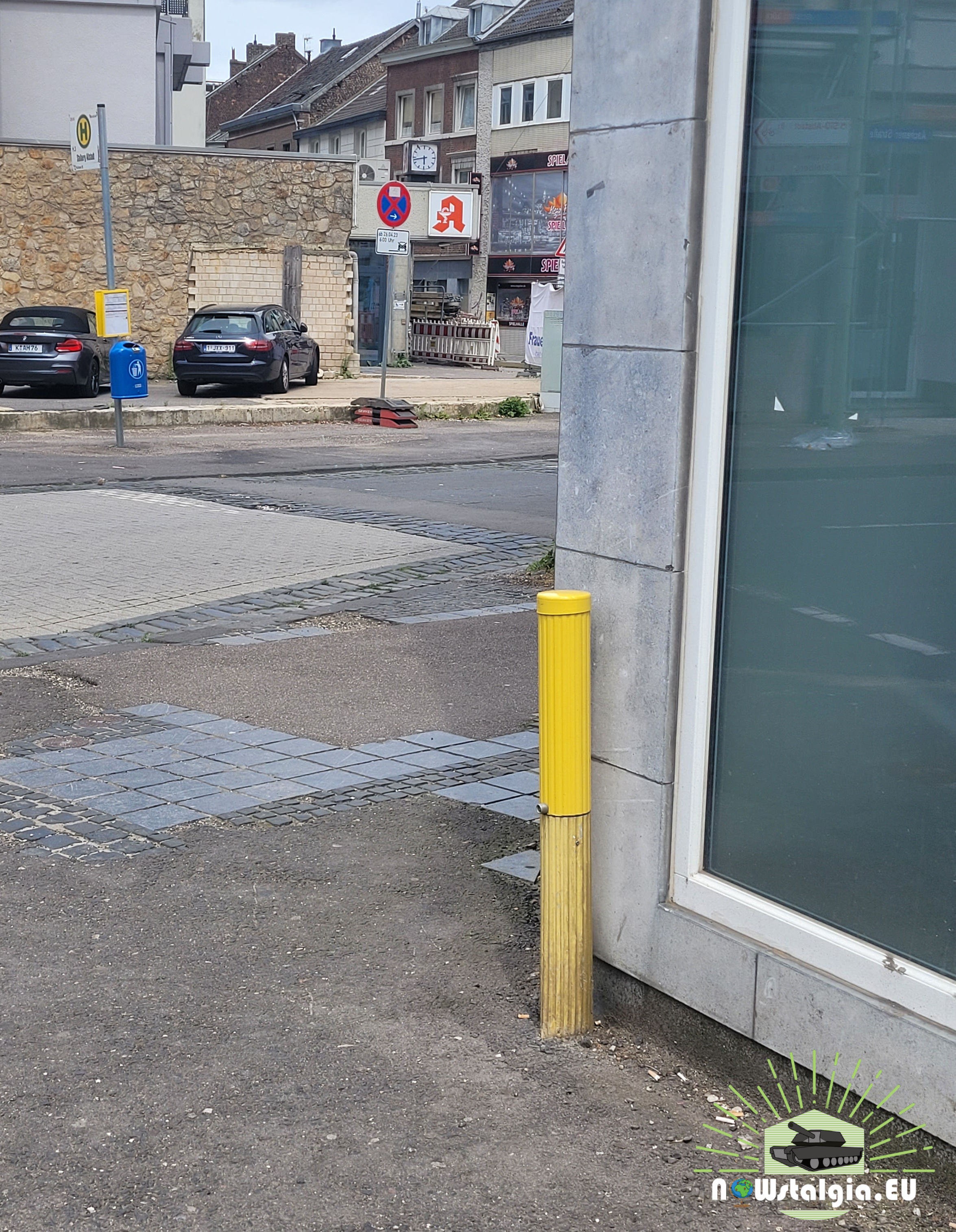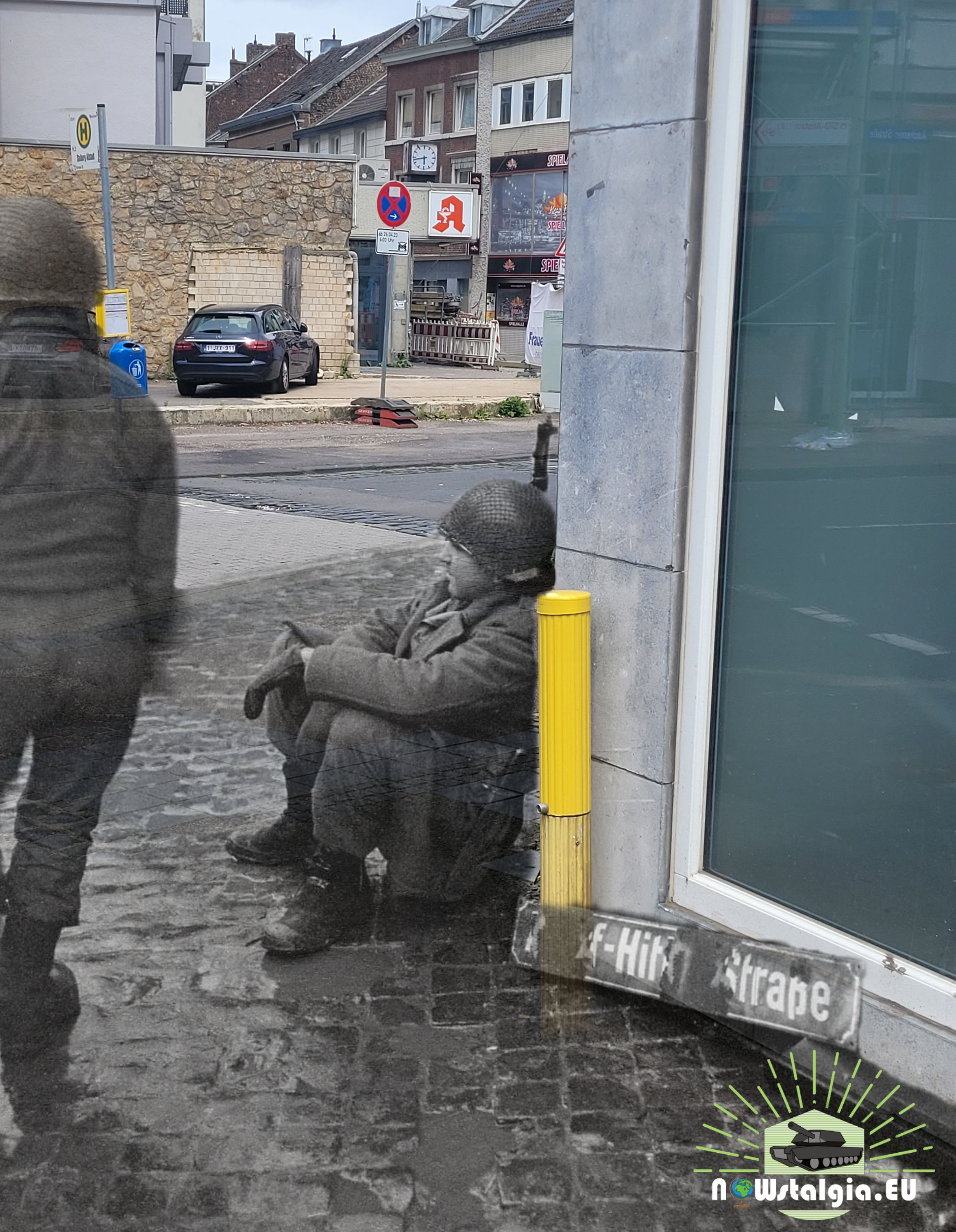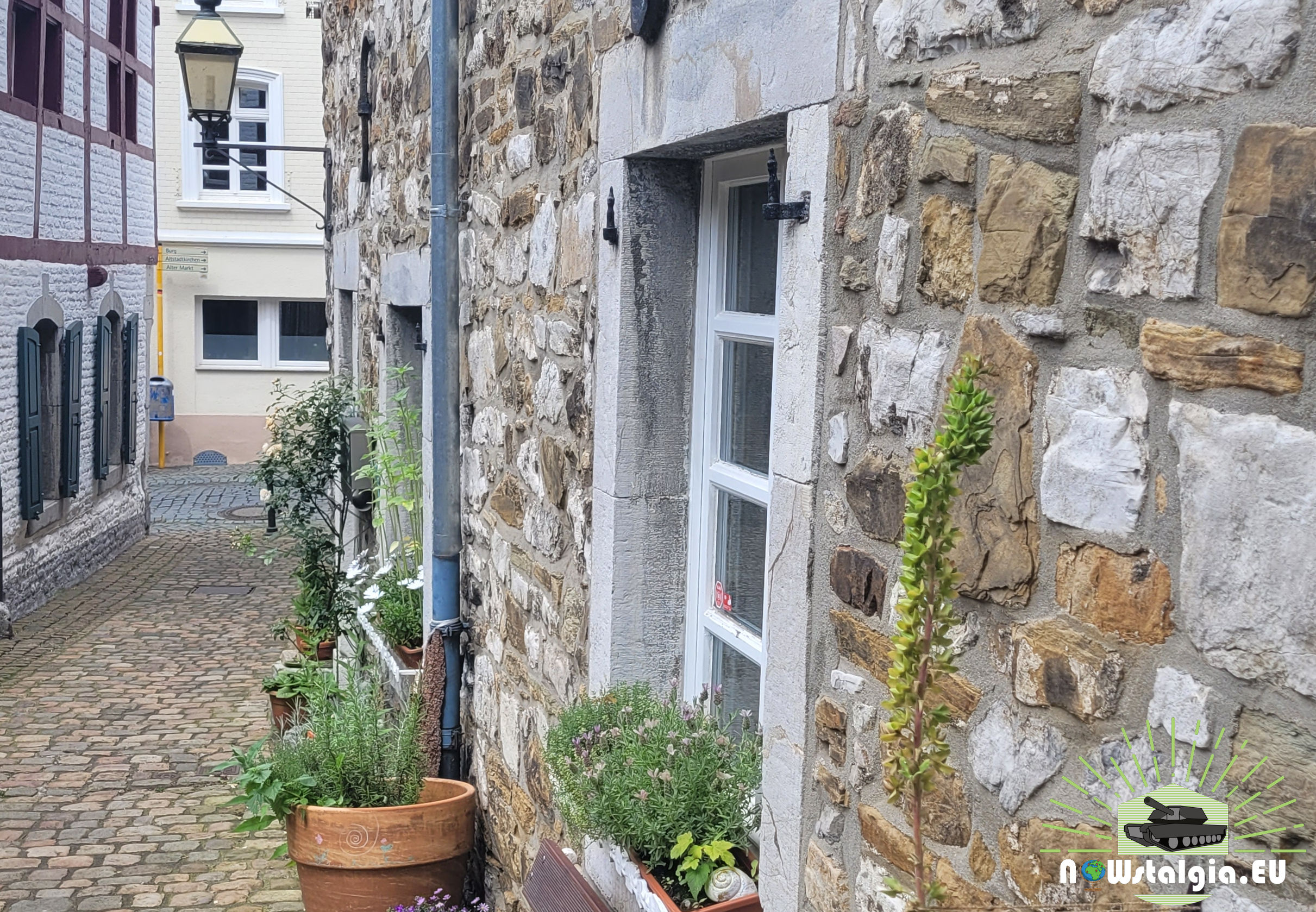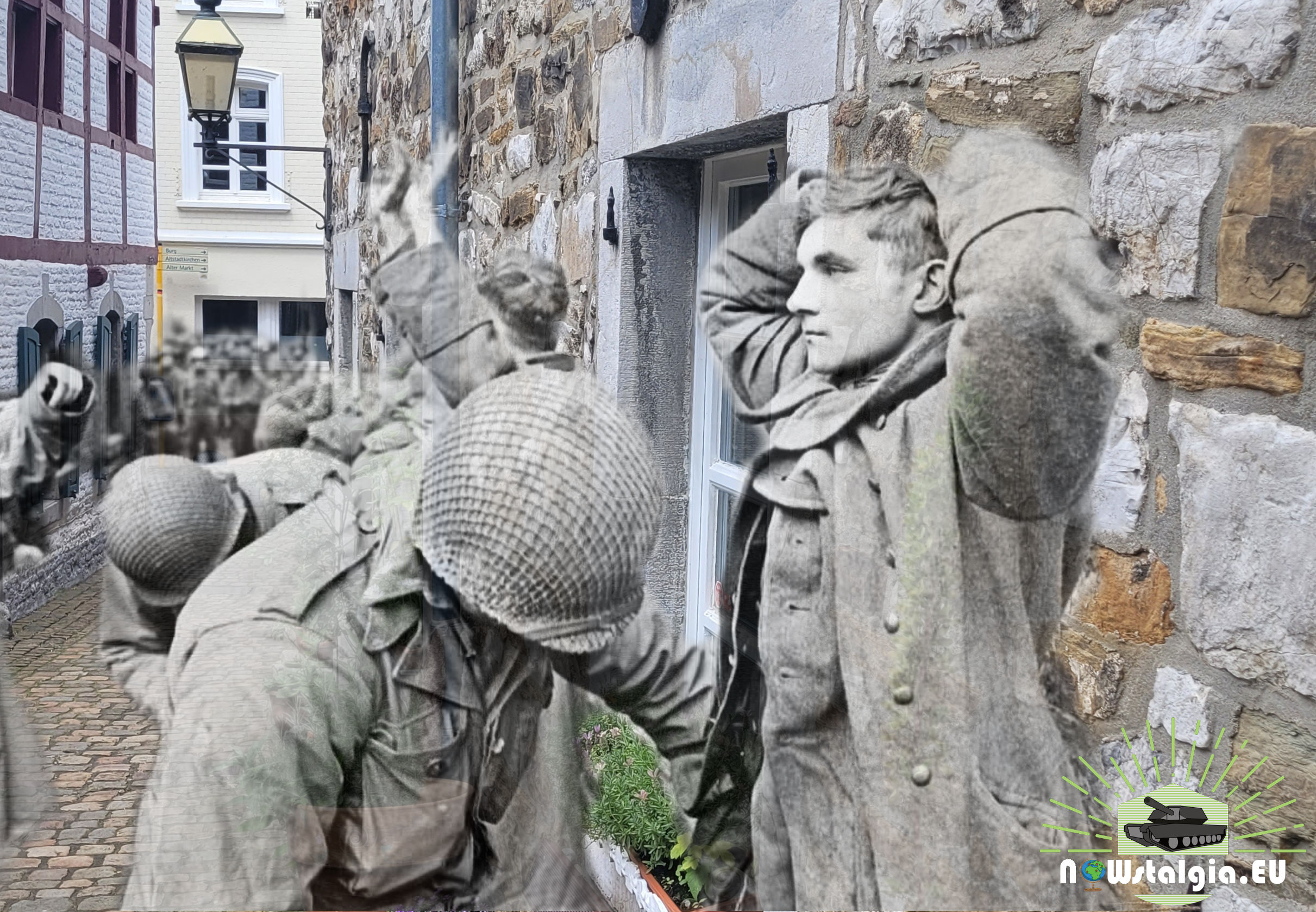 The Stars and Stripes flies from a building on the left while on the right you can read the slogan “Es lebe der Führer” or “Long live the Führer”. The town of Schwerfen was taken by a Cavalry Reconnaissance unit of the 1st U.S. Army 6 March, 1945. Further on the wall (1) you can read the slogan “Wir kapitulieren nie – Alles fur Deutschland“.