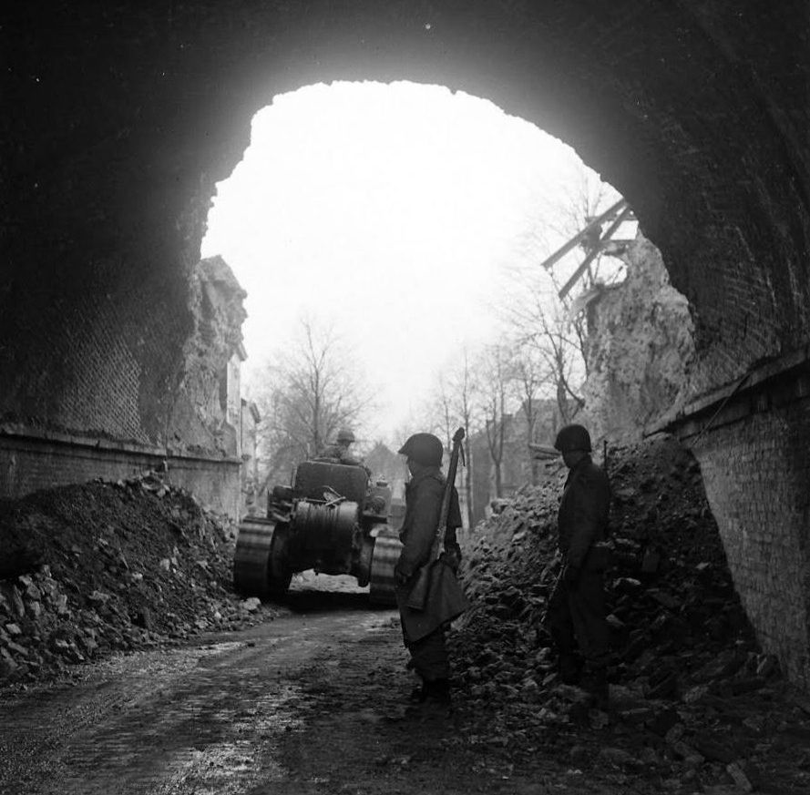 Clearing the way for US troops after the Germans? blown up the railbridge at the Röthgener Straße in Eschweiler, December 1944.