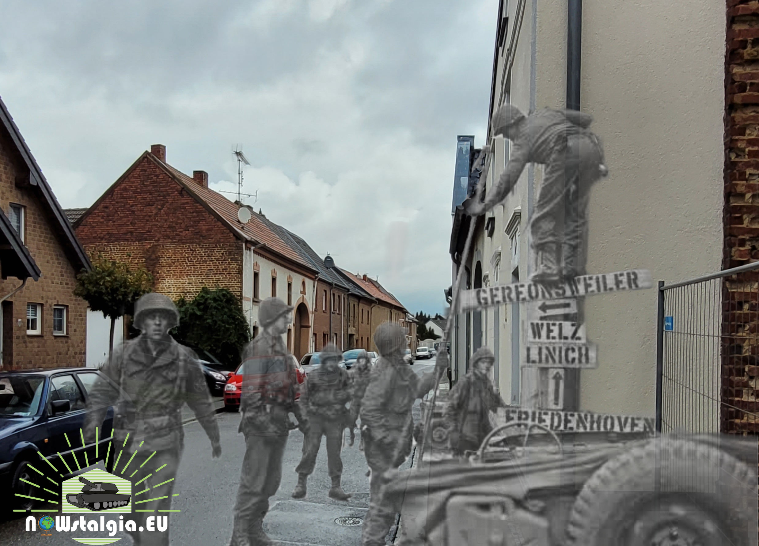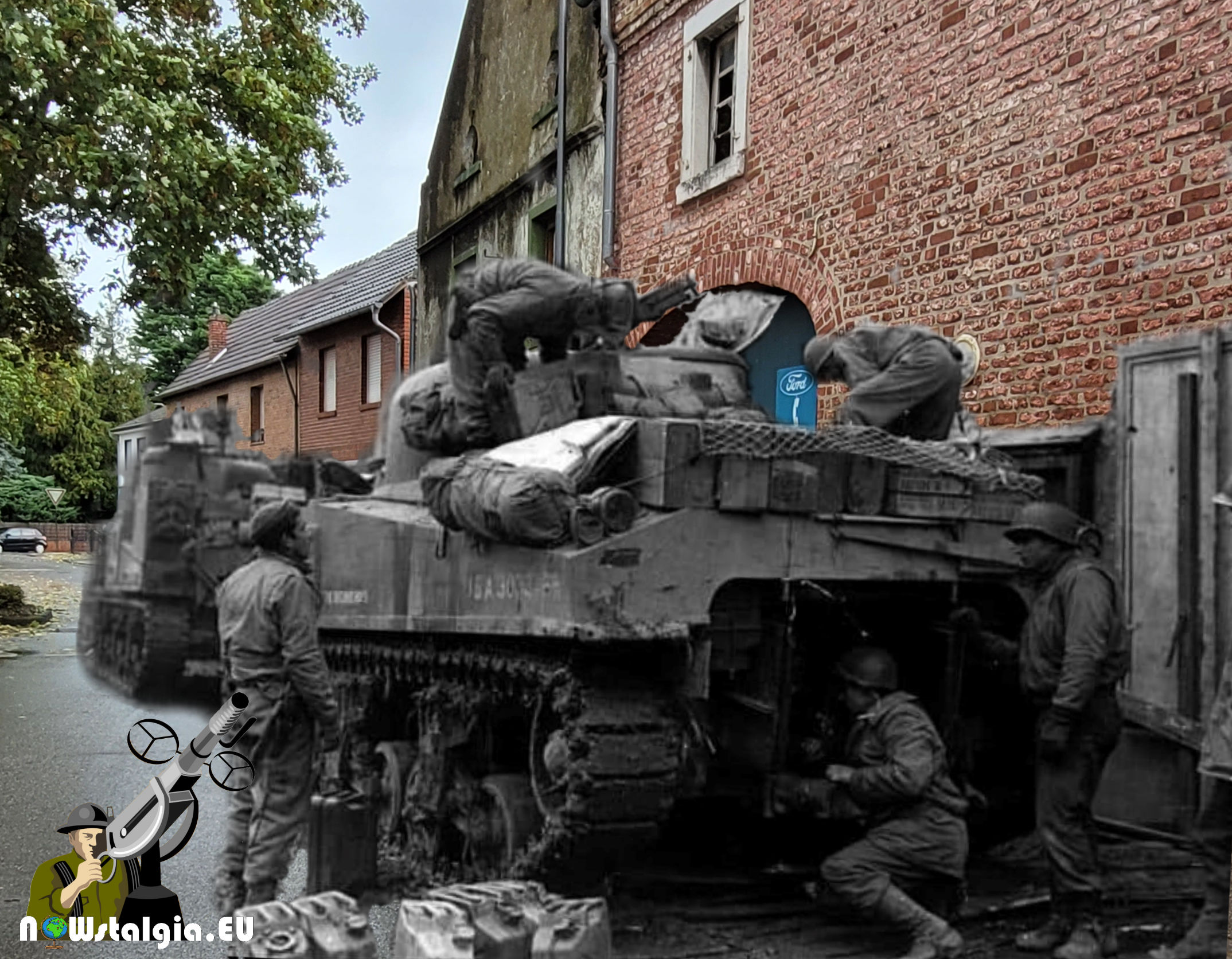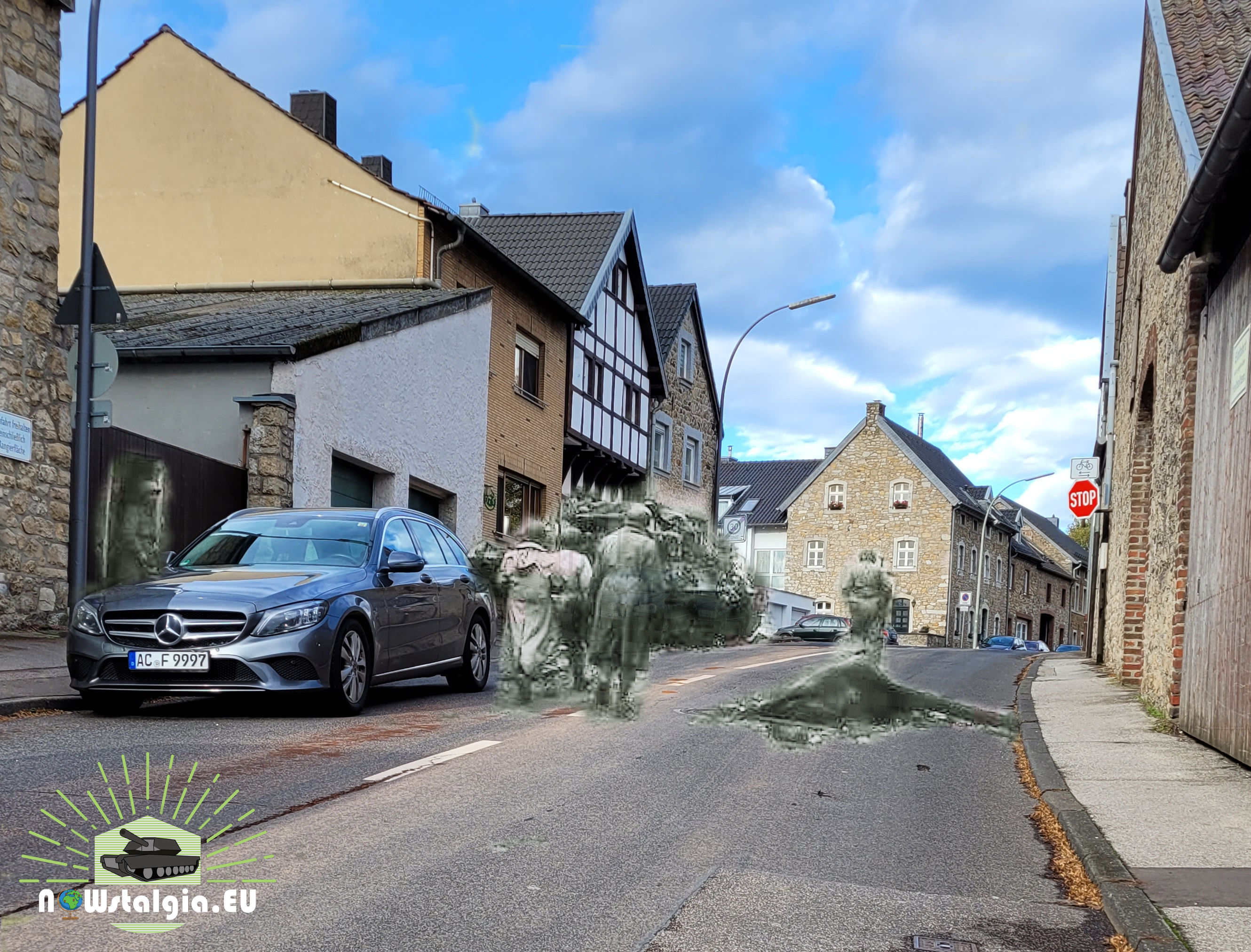 Tanks arrive in Heythuysen around 15 November 1944. During the night of November 14 to 15, many walls in Heythuysen were decorated with slogans like this. This slogan reads: Am ende steht der deutschen sieg! or In the end there is German Victory!