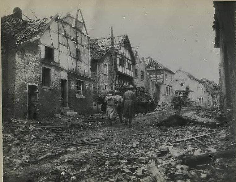 Streetscene in Ederen, Germany during operation Queen in November 1944.