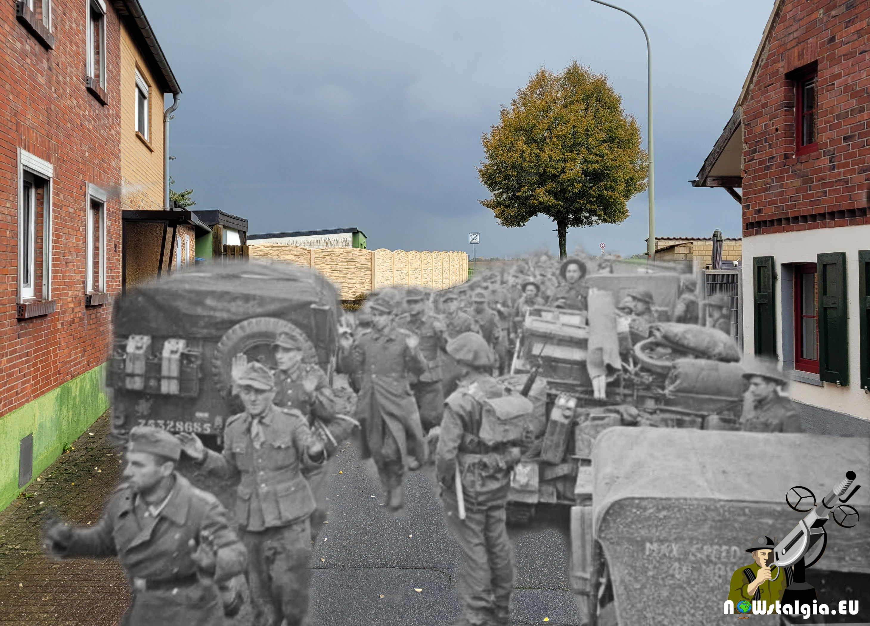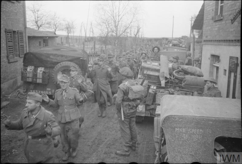 German prisoners are escorted through the village of Gillrath during operations near Geilenkirchen, 5 December 1944.