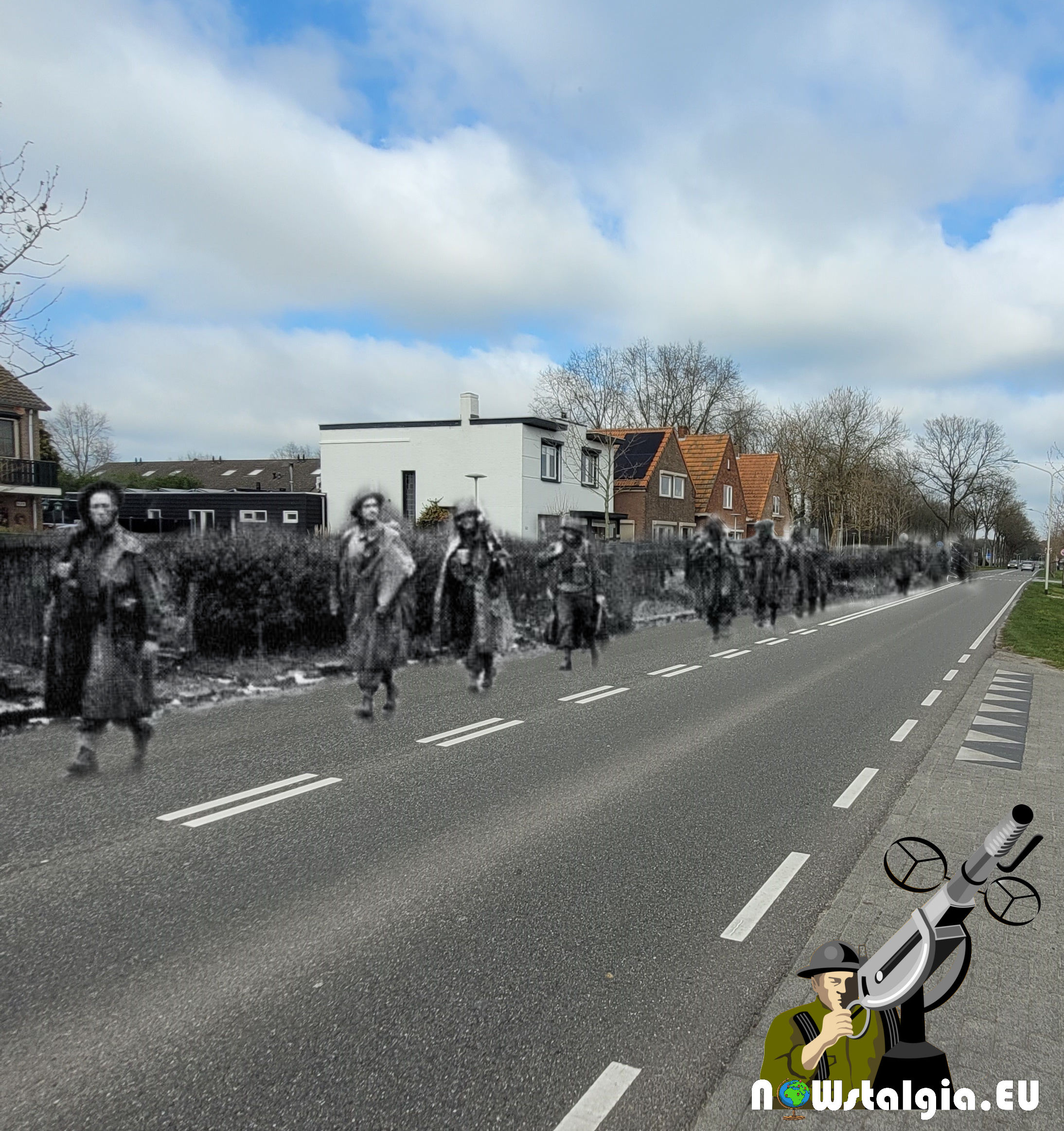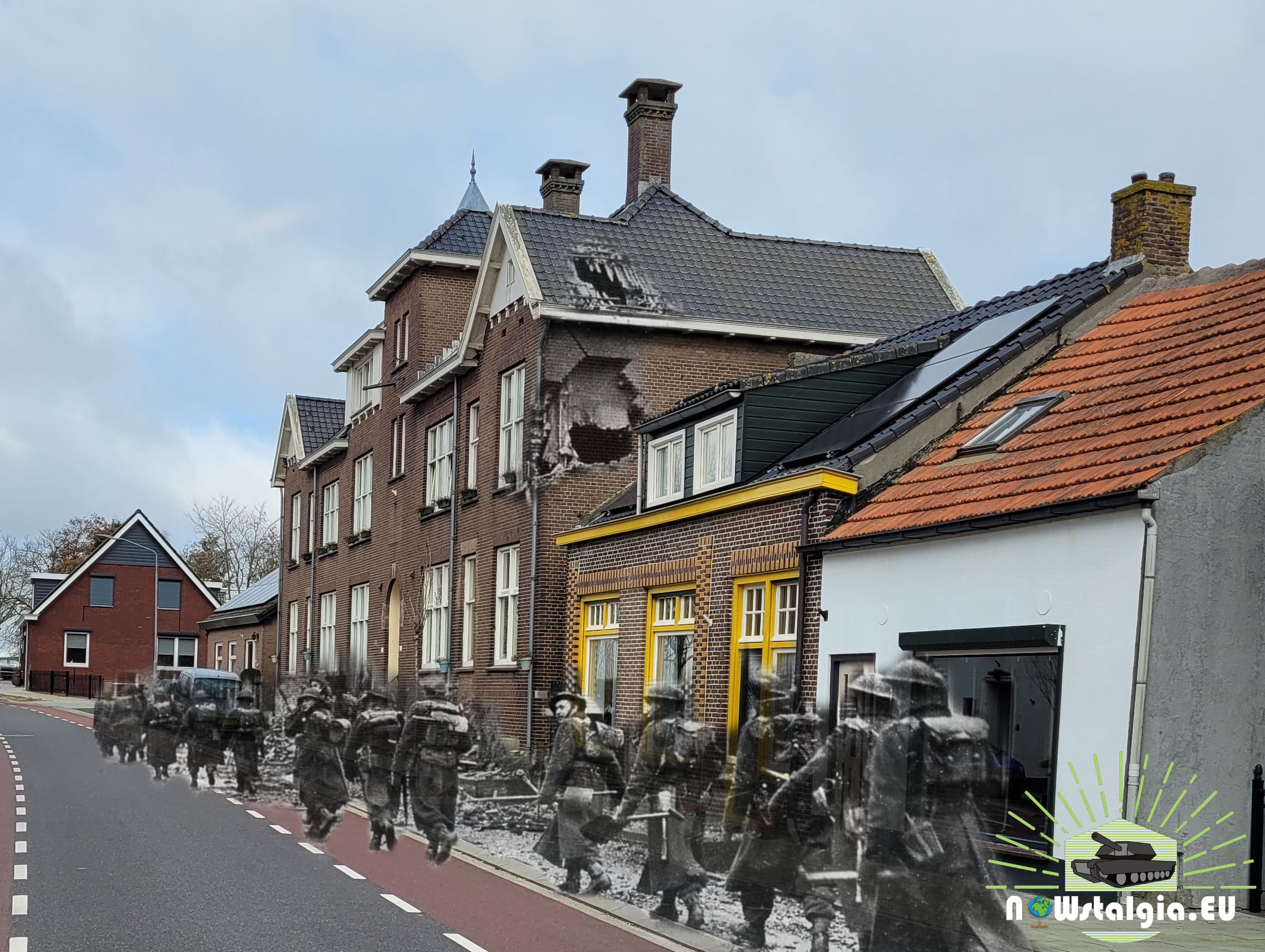 Same soldiers walking trough Hoogerheide during the advance of the Kreekrakdam and Operation Suitcase in November 1944.