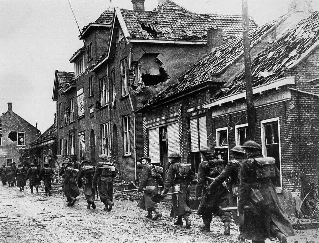 Infantry of the 1st Polish Armoured Division entering the war-damaged town of Moerdijk, probably 10 November 1944.