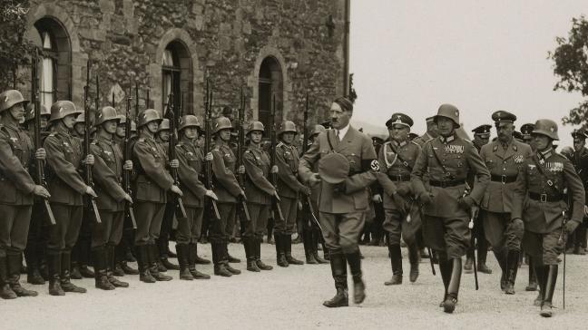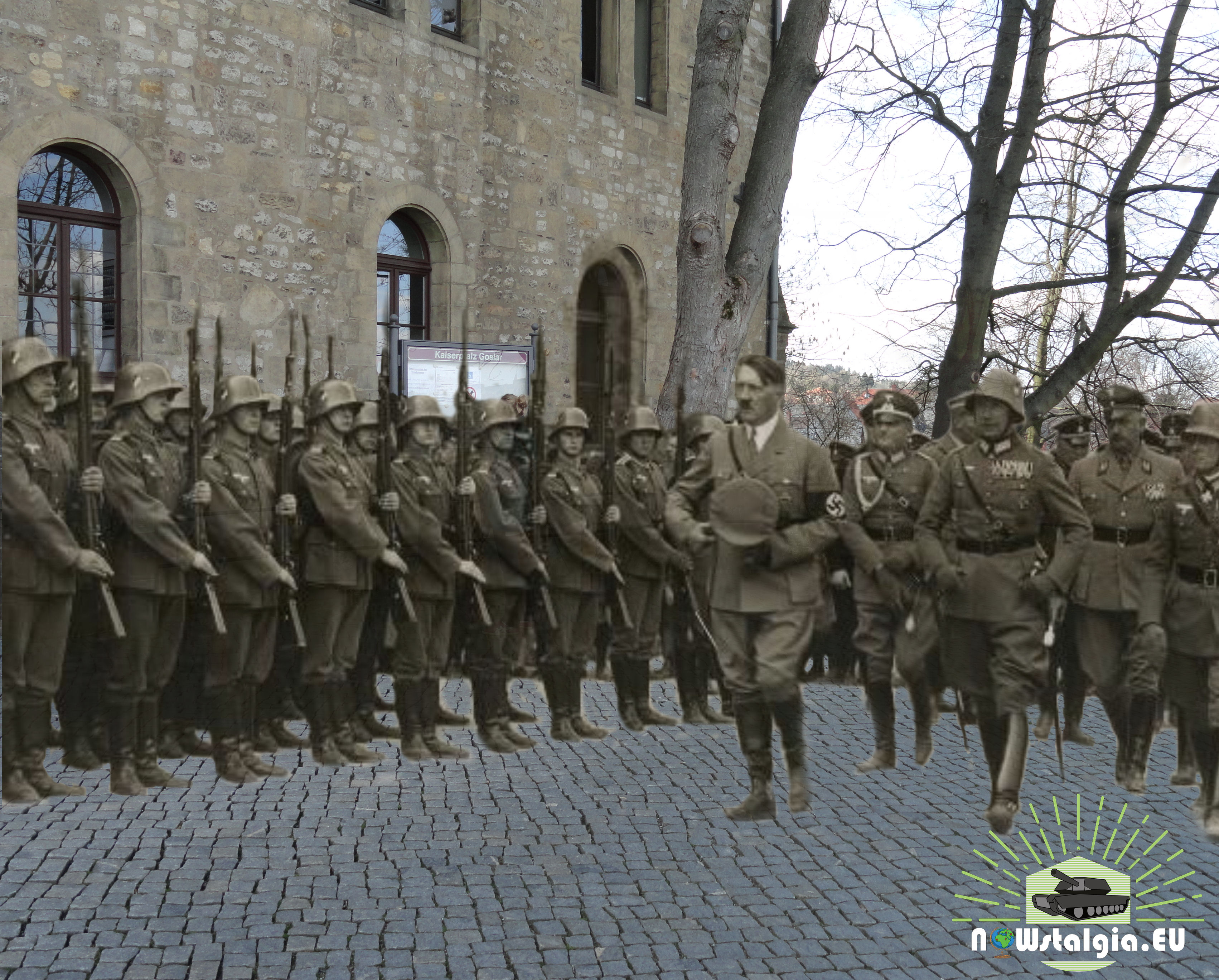 Hitler inspecting troops in September 1934. Photo is taken before the Kaiserpfalz in Goslar.