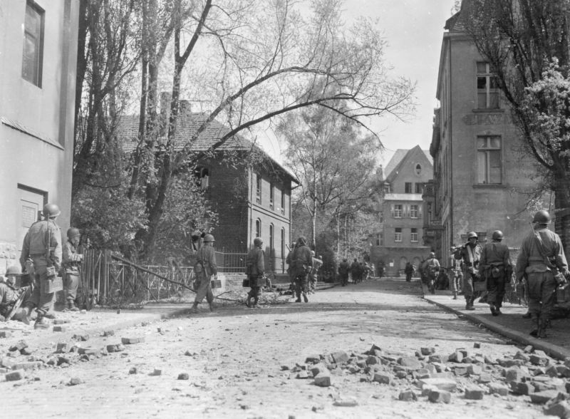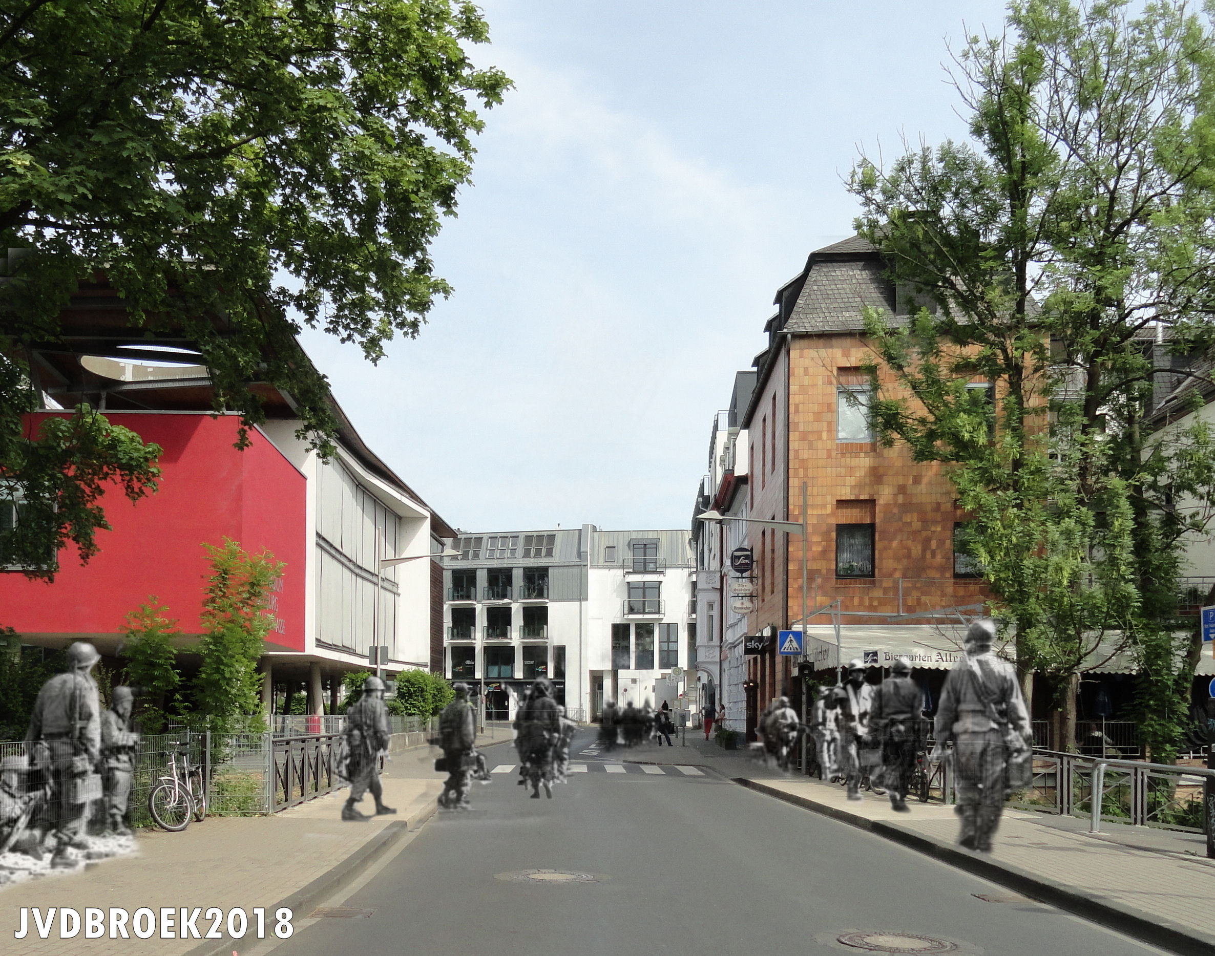 Allied troops of the 97th infantry division in the Alleestraße, Siegburg, 1945. Not the best then in now maybe but I really like this location because so much is changed and it was difficult to trace.