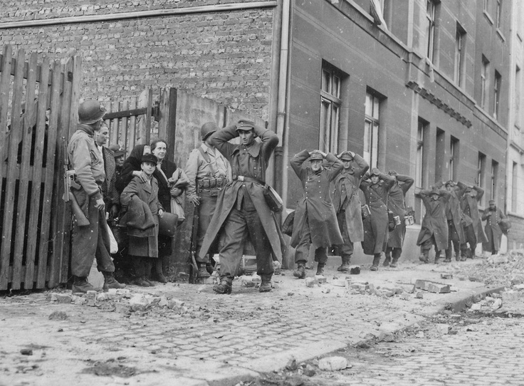 Volksturm surrender in the Weißenburger Straße in Aachen in 1945.
