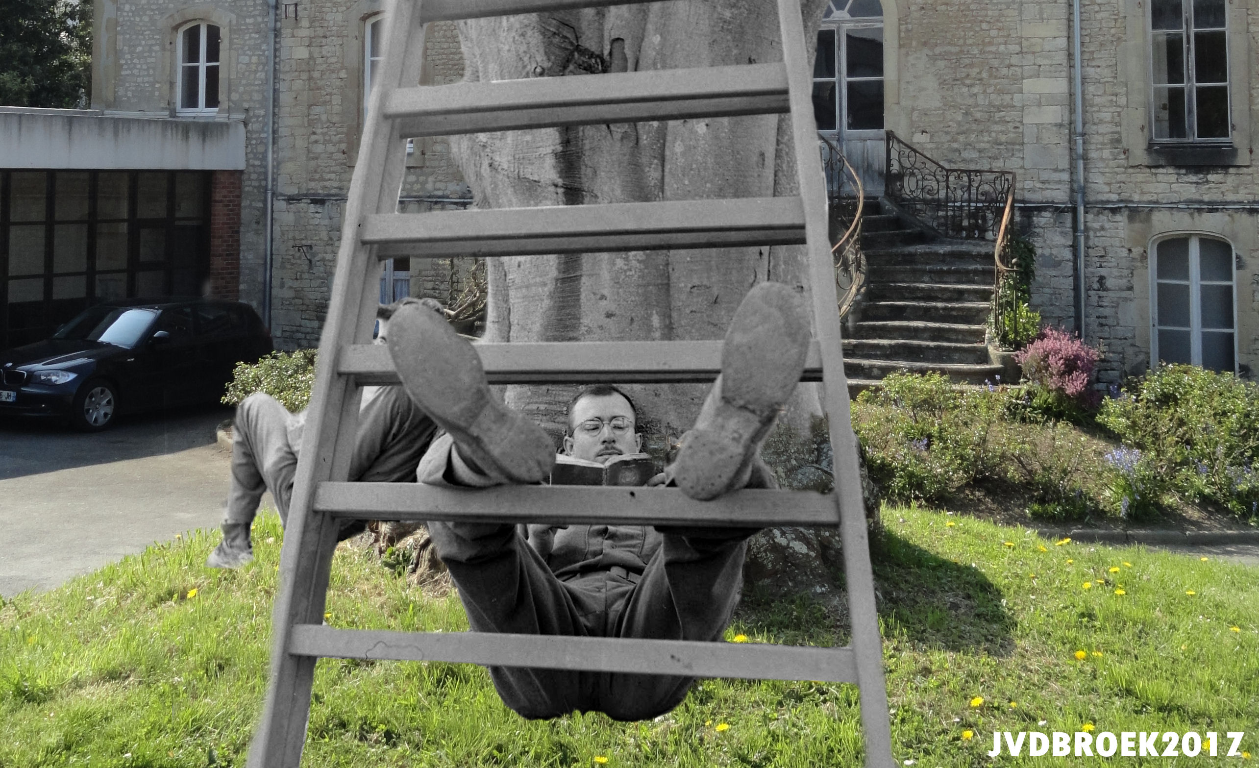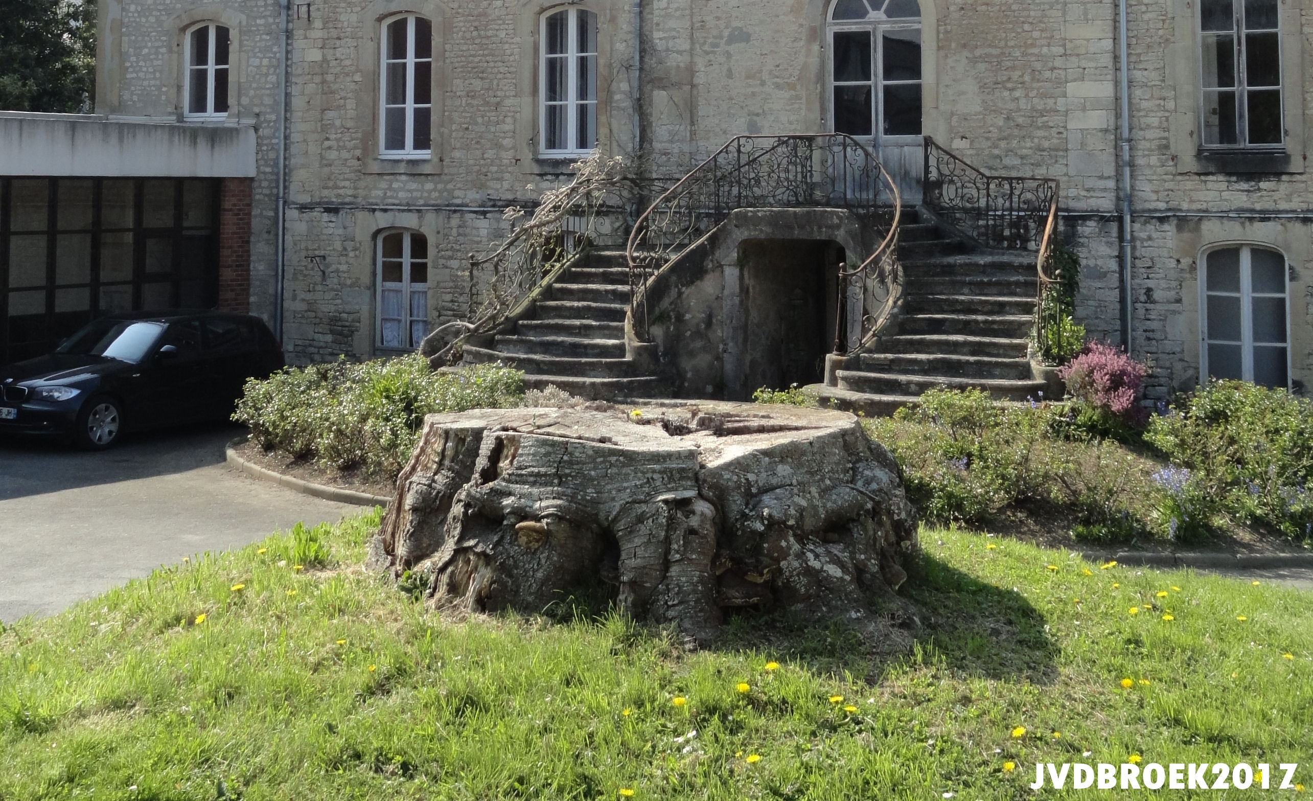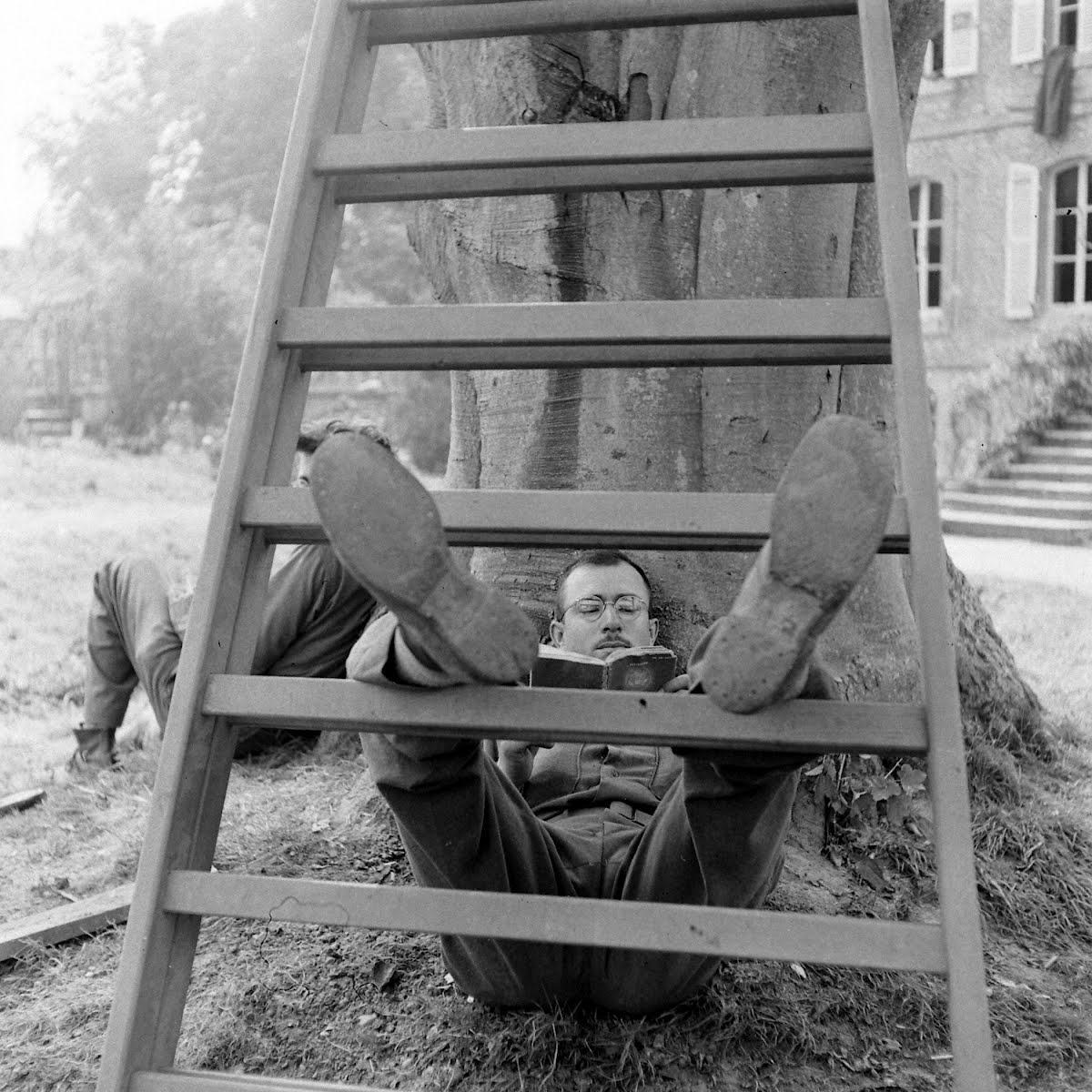 Carentan, Rue Holgate 45, two American soldiers are resting in the park of the hospital, between June 28 and July 13th 1944.