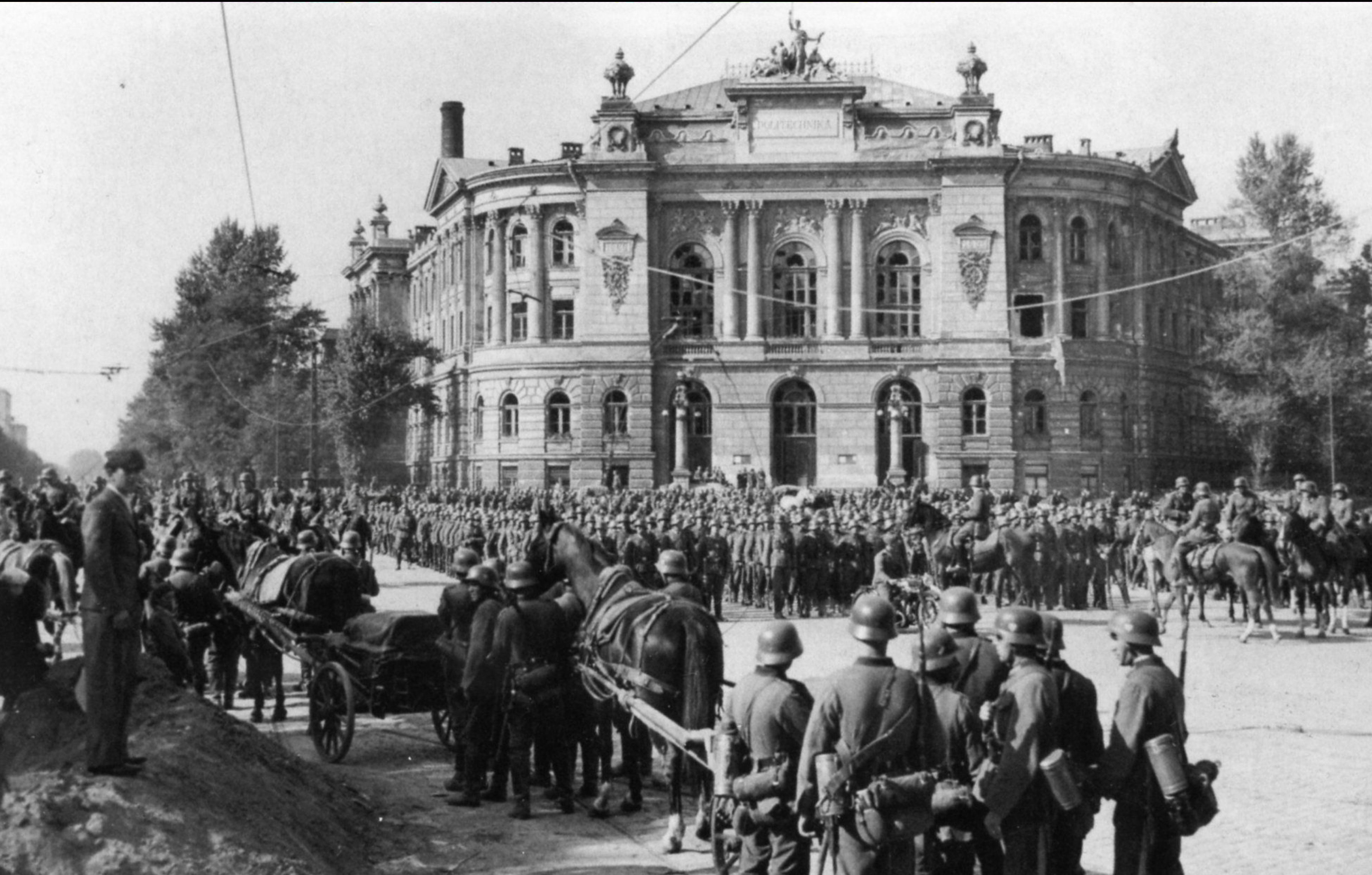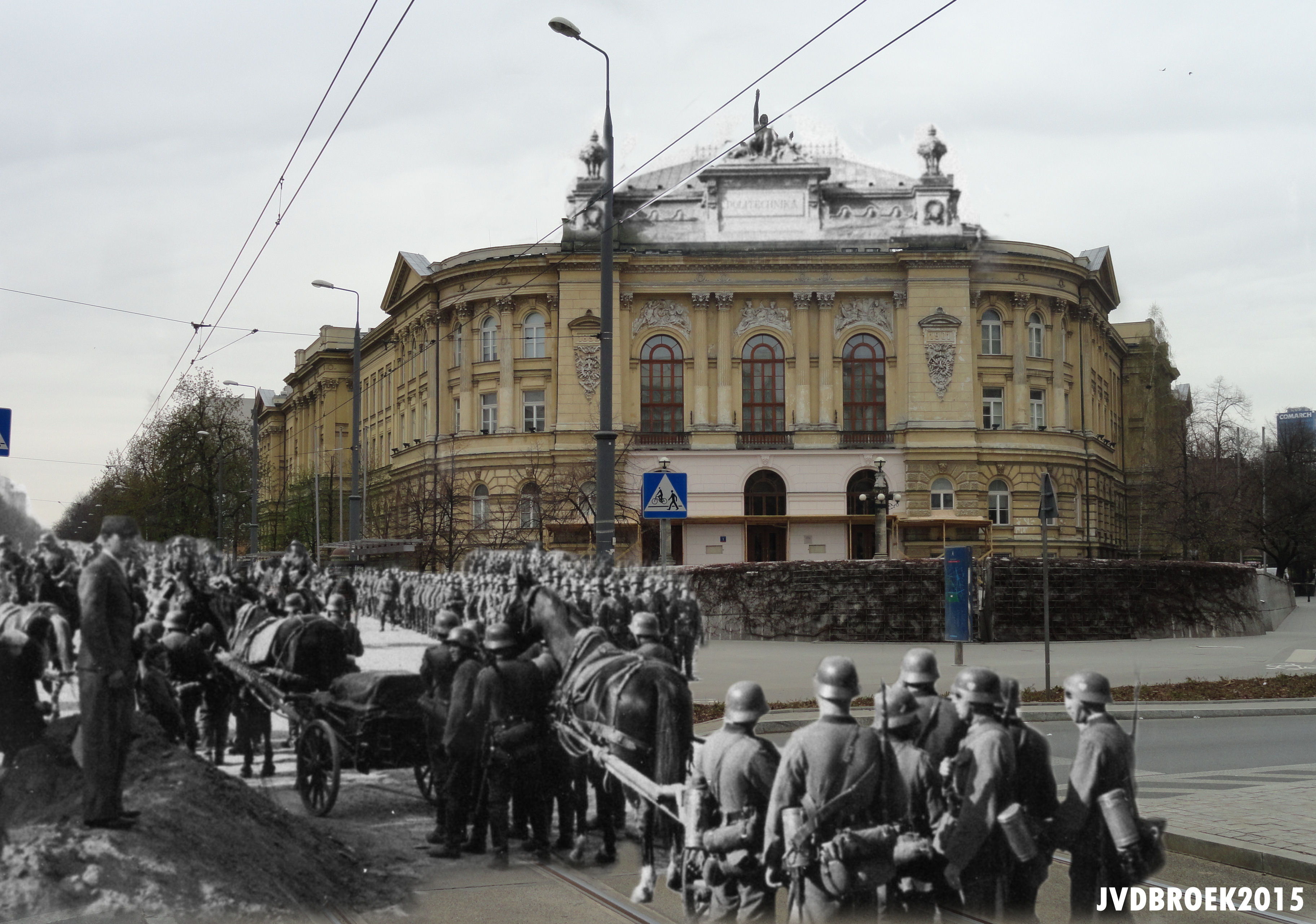 After evacuating all Polish troops a victory parade of German troops in Warsaw at the Plac Polytechnika in October 1939.