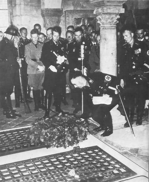 “Heinrichsfeier“ 1938: Himmler lays a wreath at the grave of