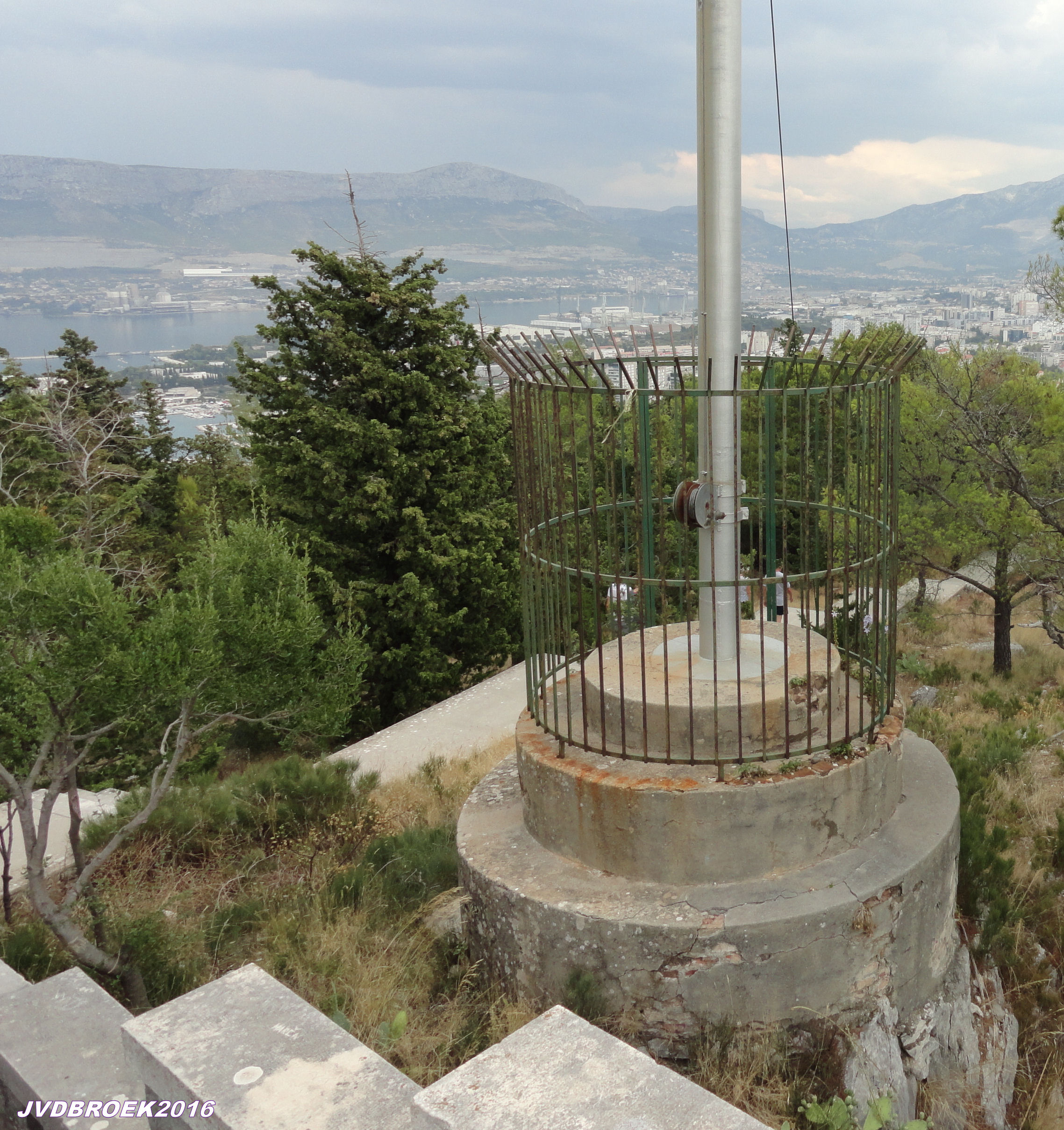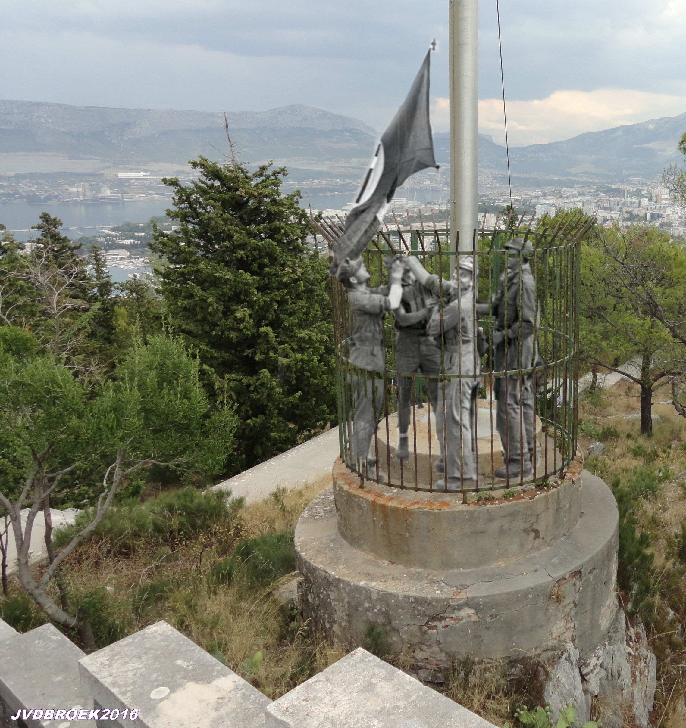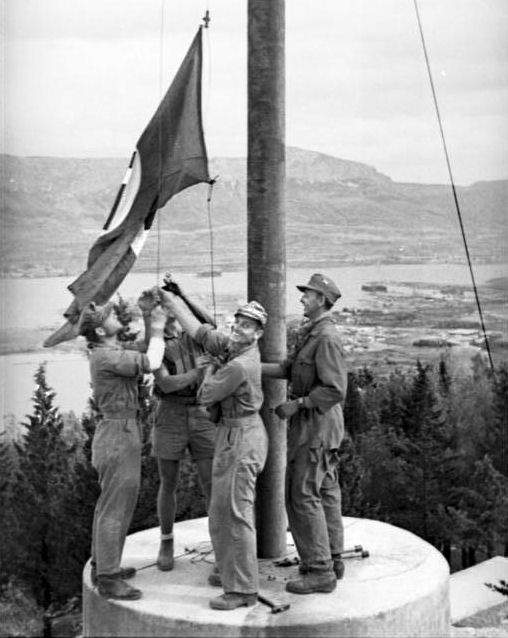 Split, Croatia 1943. German soldiers raising the swastika flag at the top of the Marjan Hill.