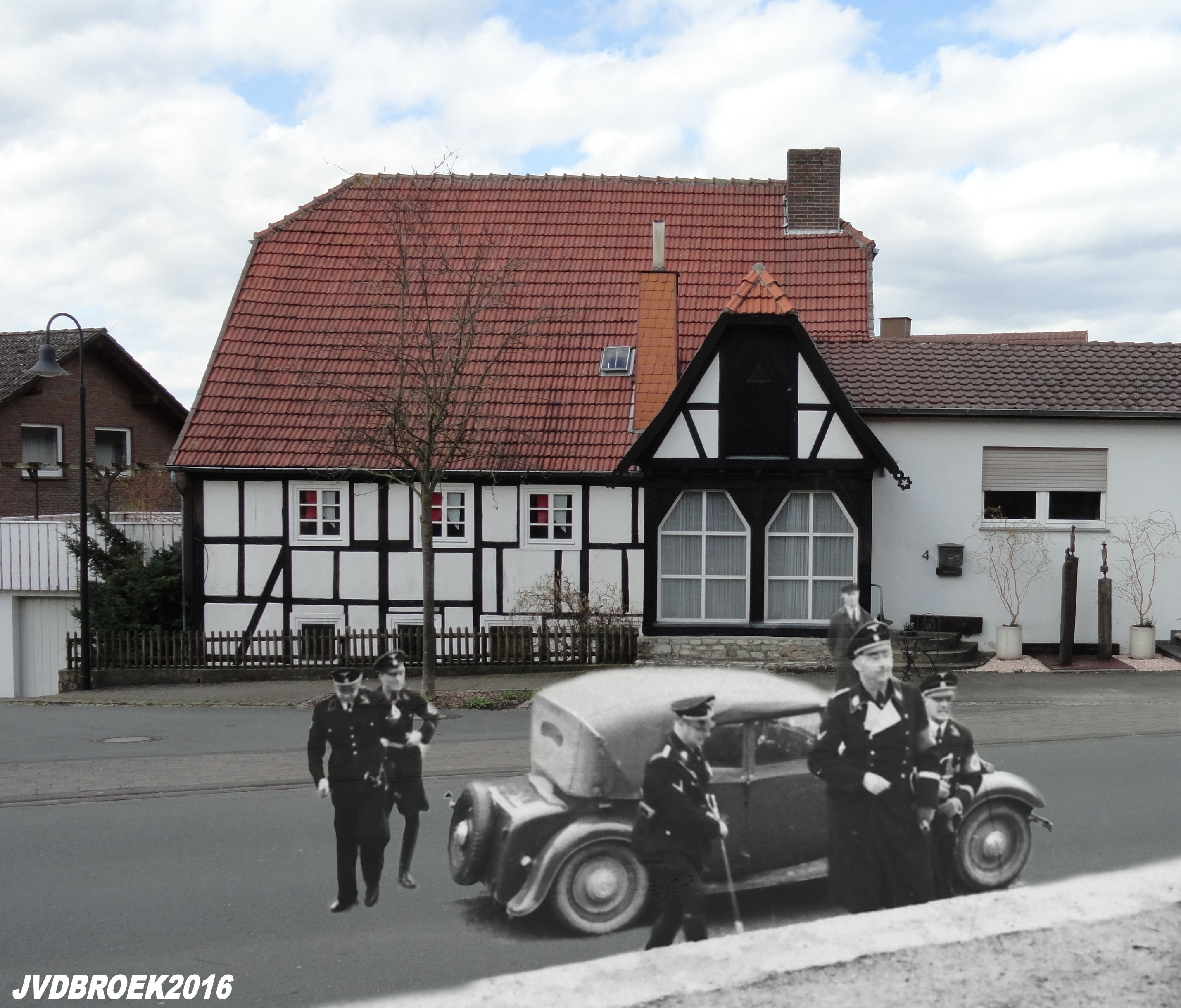 Heinrich Himmler visiting Landgasthaus Ottens Hof near Wewelsburg. Gasthaus is still there and is behind me.
