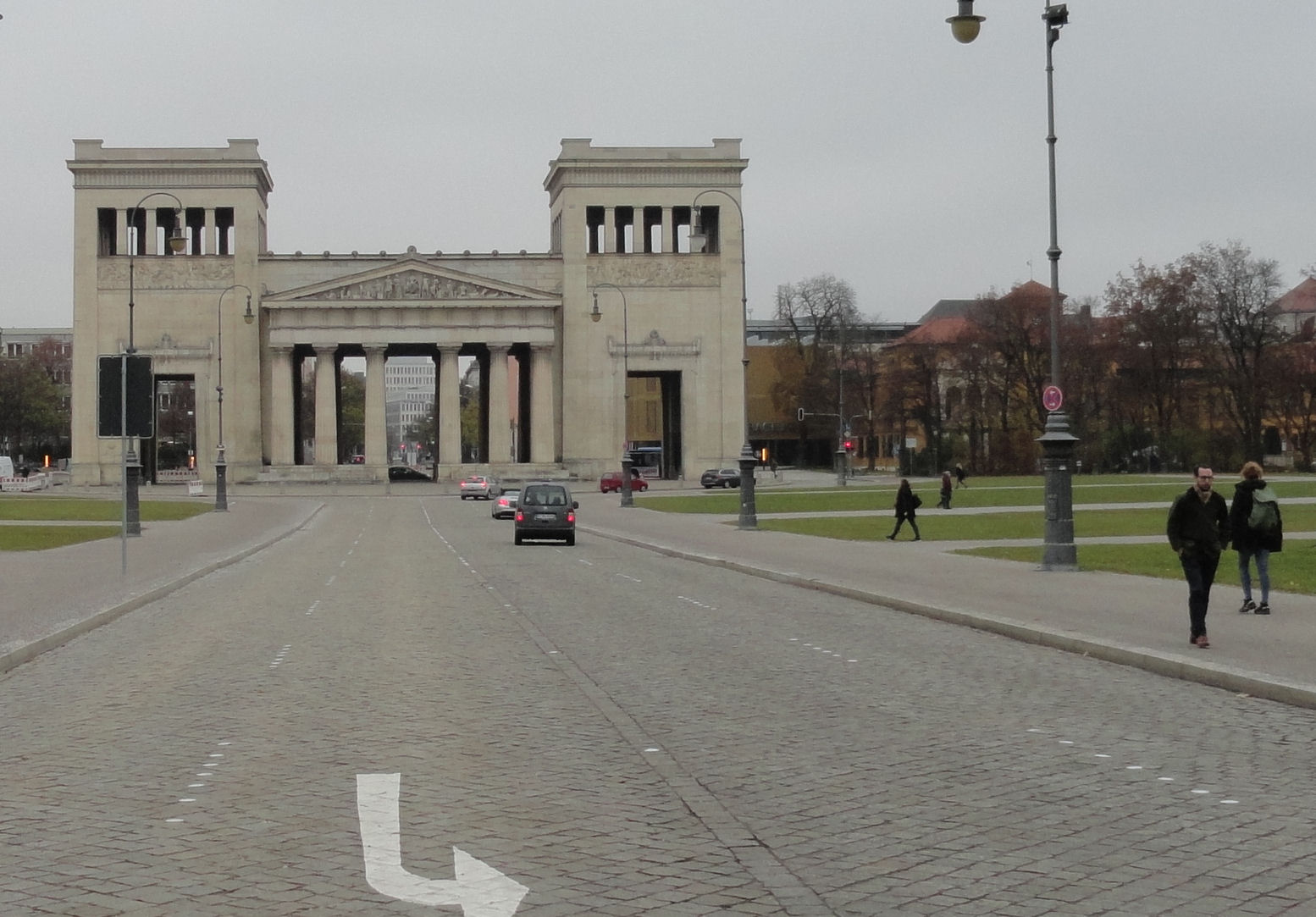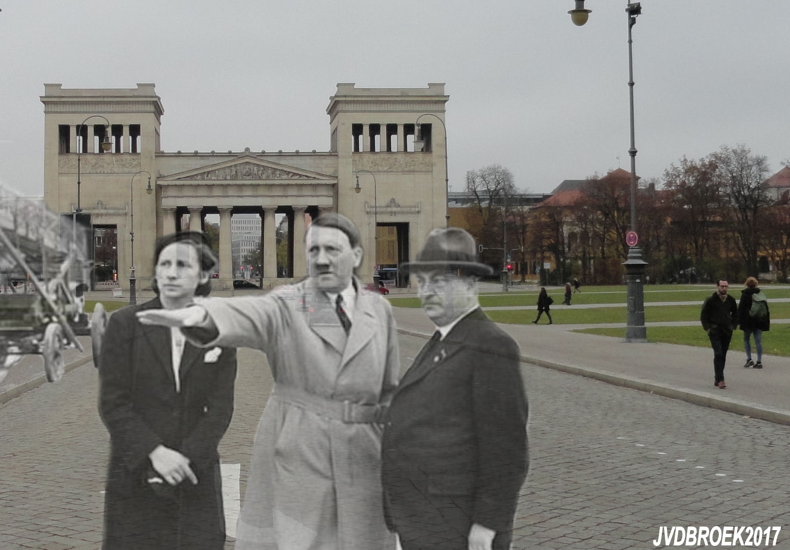 Hitler with the architect Paul Ludwig Troost and his wife at the Königsplatz.