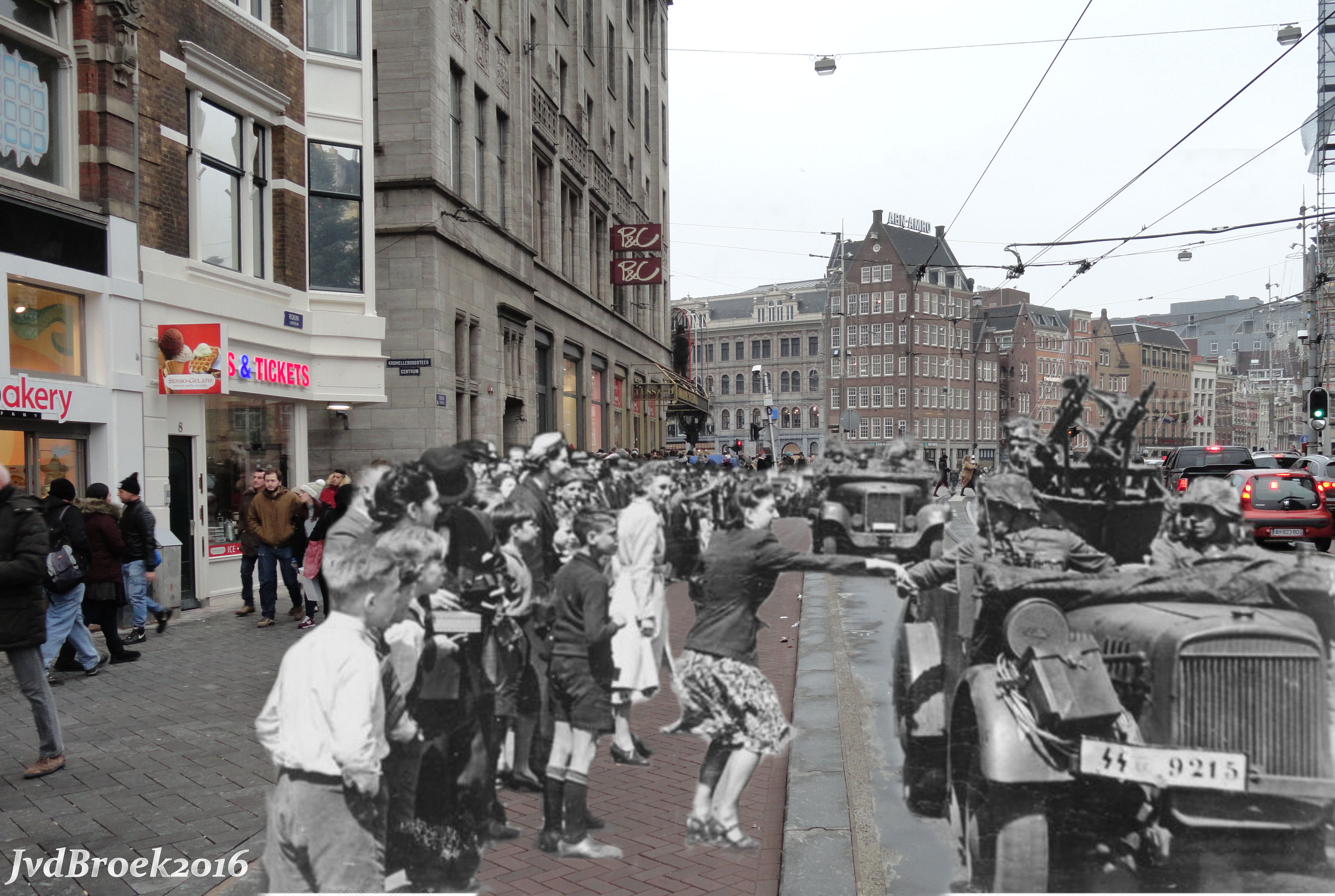 German Troops arrive in Amsterdam at the Dam, in 1940.