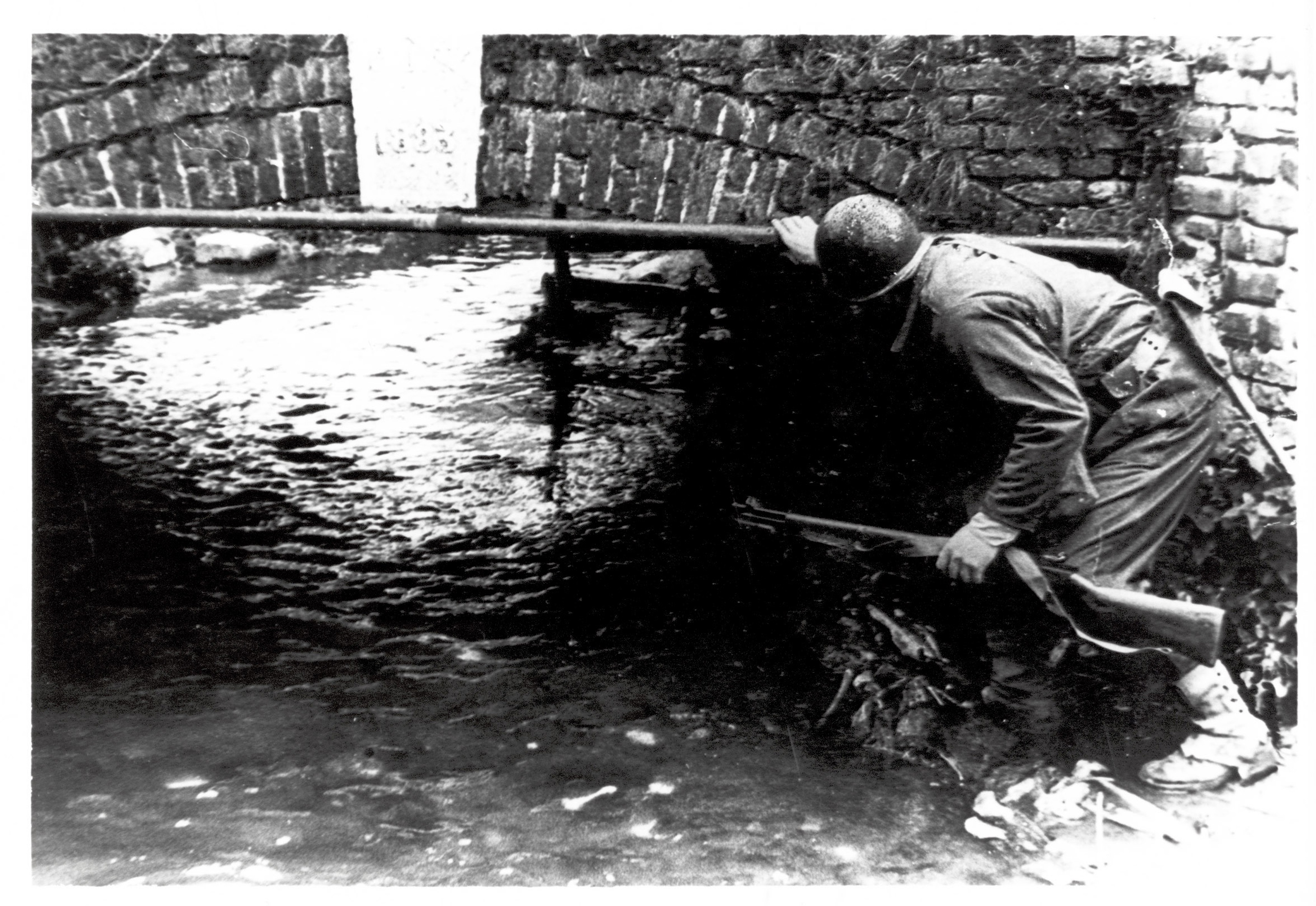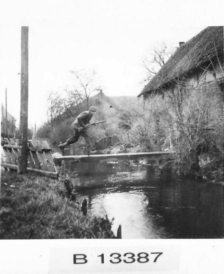 Nieuwstadt; While some men give covering fire, others troops of the 1st Rifle Brigade make a dash across the stream.