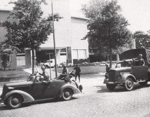 Arrival or departure of German Soldiers at the AVRO studios in Hilversum the Netherlands, in 1940.