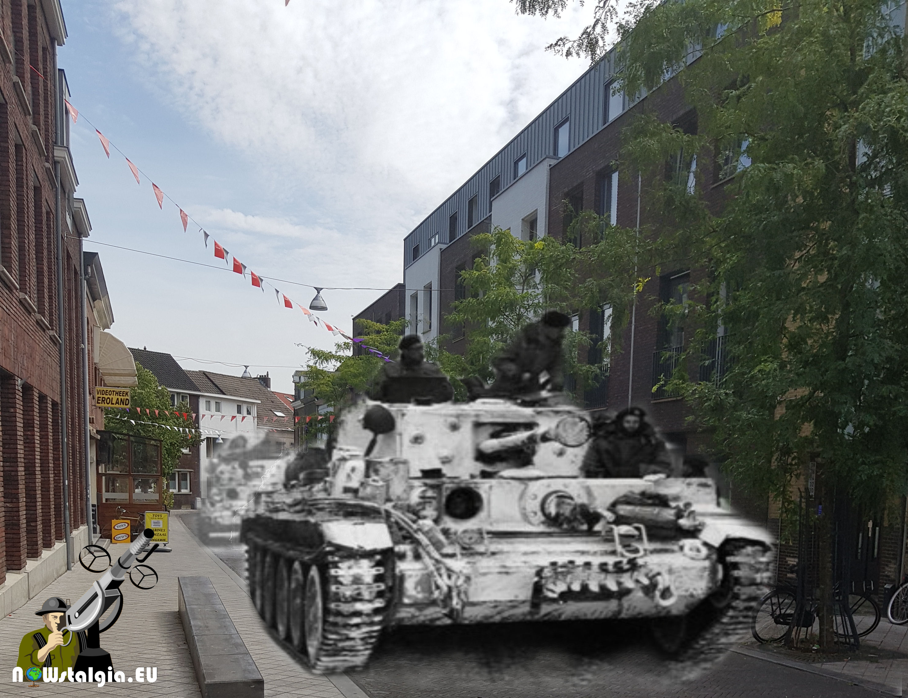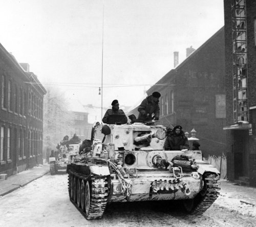 English Cromwell MK IV tanks, from the King’s Own Hussars, 7th Armored Division in Sittard, opposite the station, at the start of Operation Blackcock.