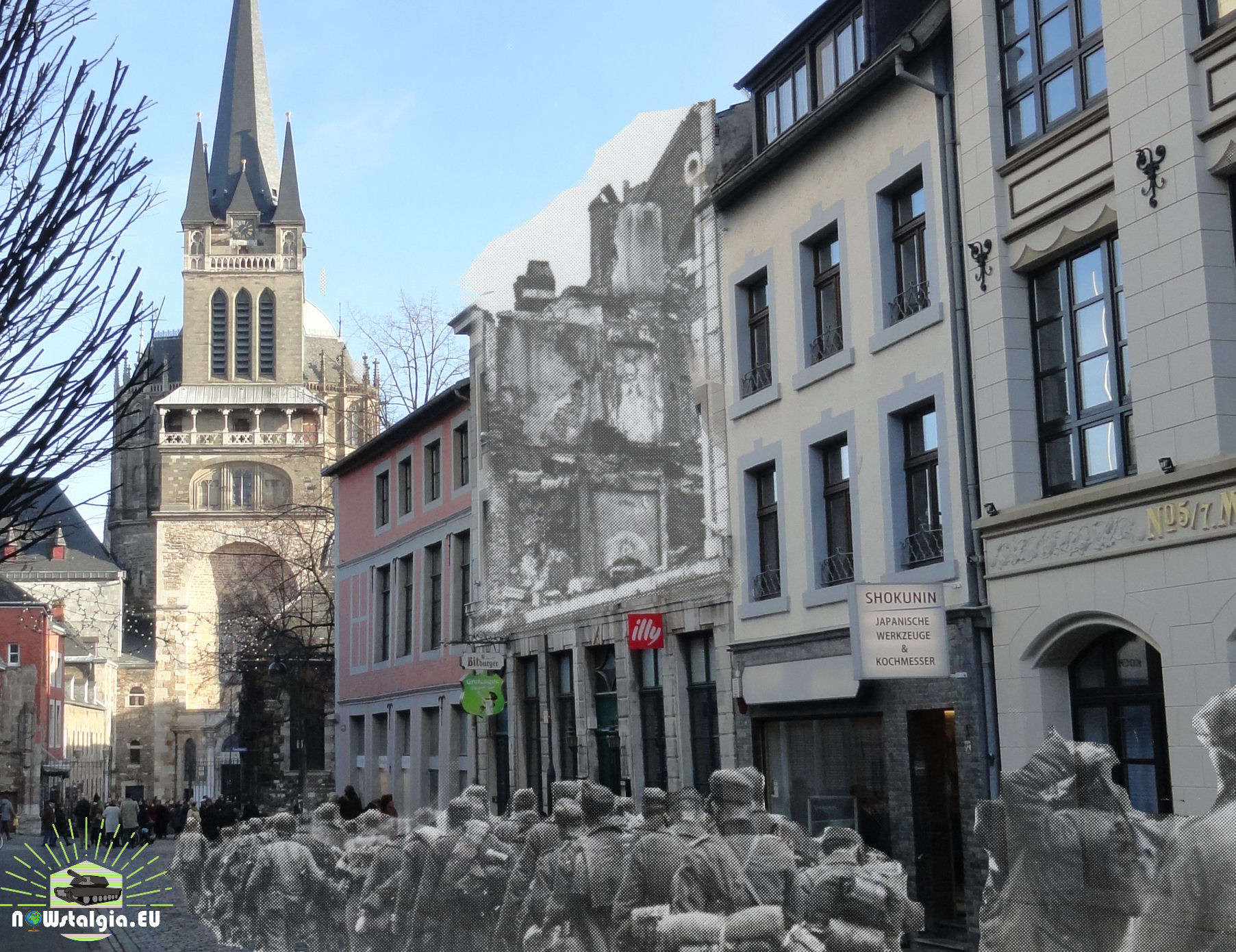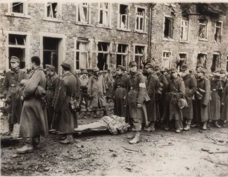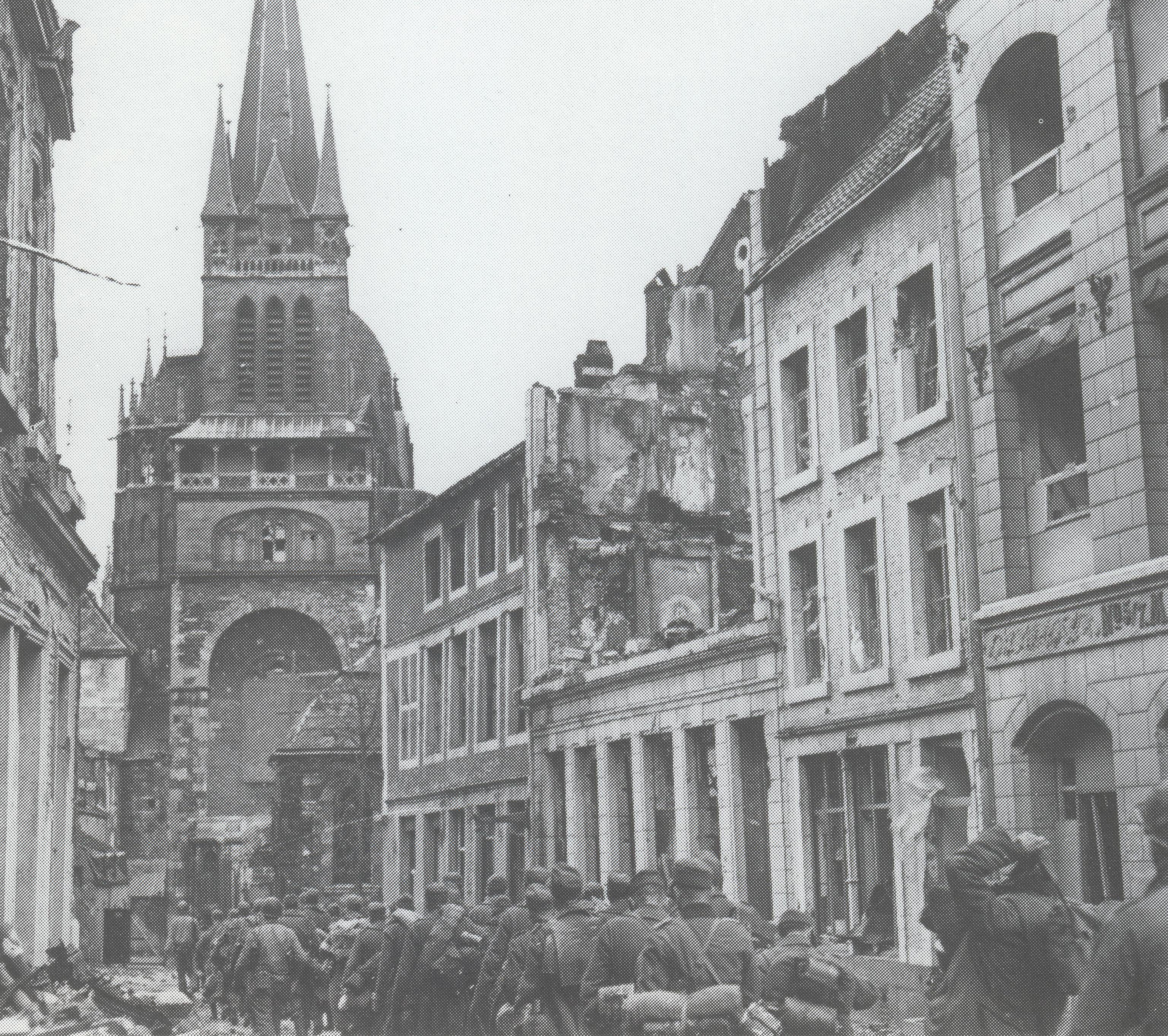 German soldiers, who already surrendered, were marched out of the city of Aachen.