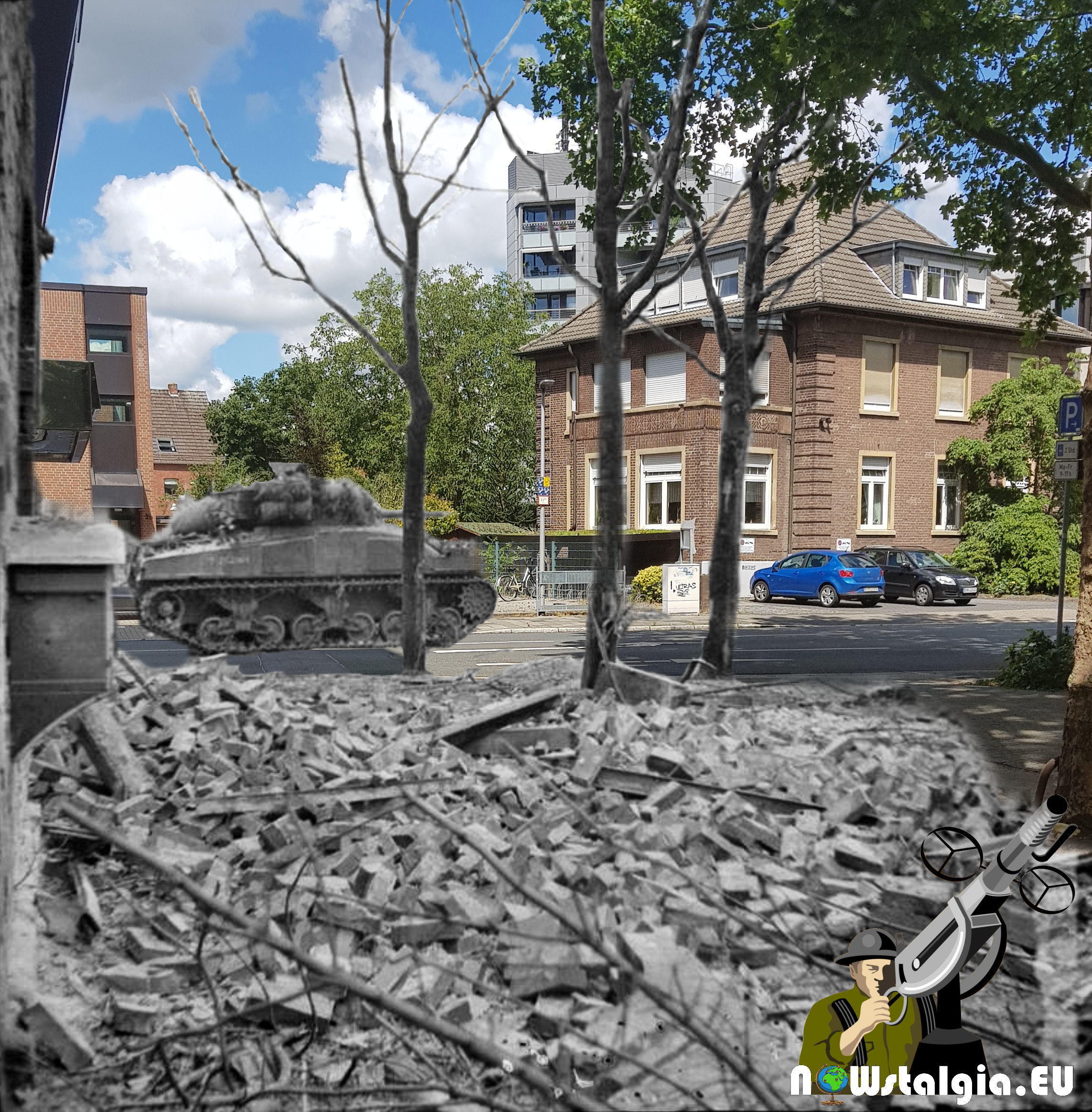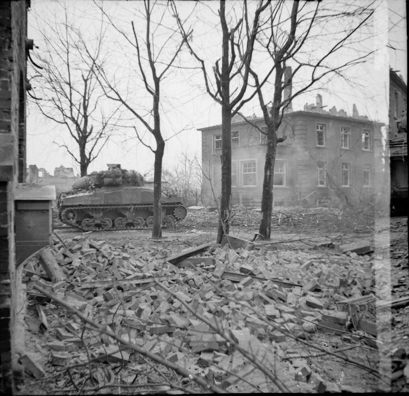 Sherman tank of 4th Armoured Brigade in Bocholt, 29 March 1945.