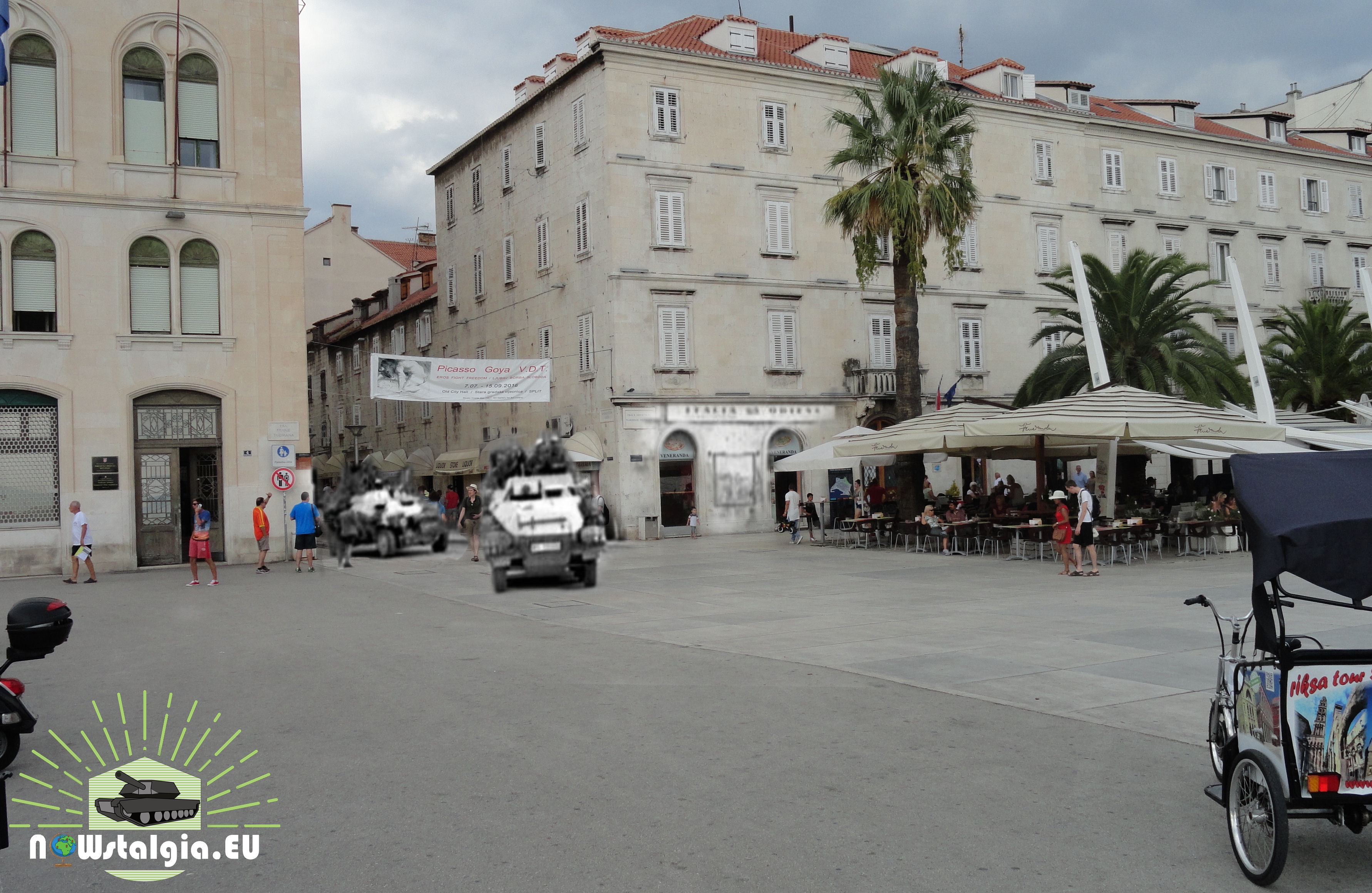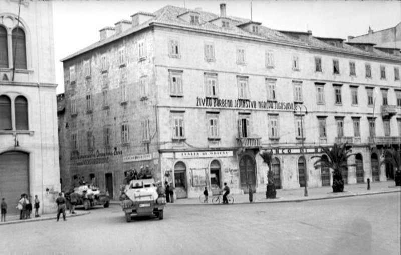Yugoslavia, Split.- Entry of German troops, armored vehicles (Sd.Kfz. 233) , civilian population on the roadside.