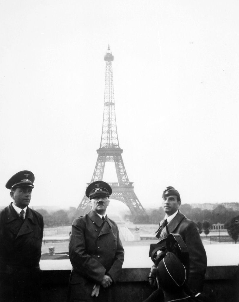 Adolf Hitler with Albert Speer and other members of his staff in Paris in 1940 after the armistice with France.