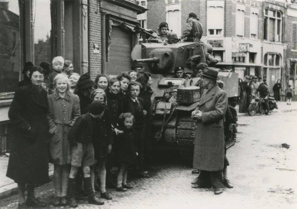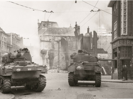 15 April 1945: Canadian soldiers reaching the Rademarkt near to the center of Groningen, The Netherlands