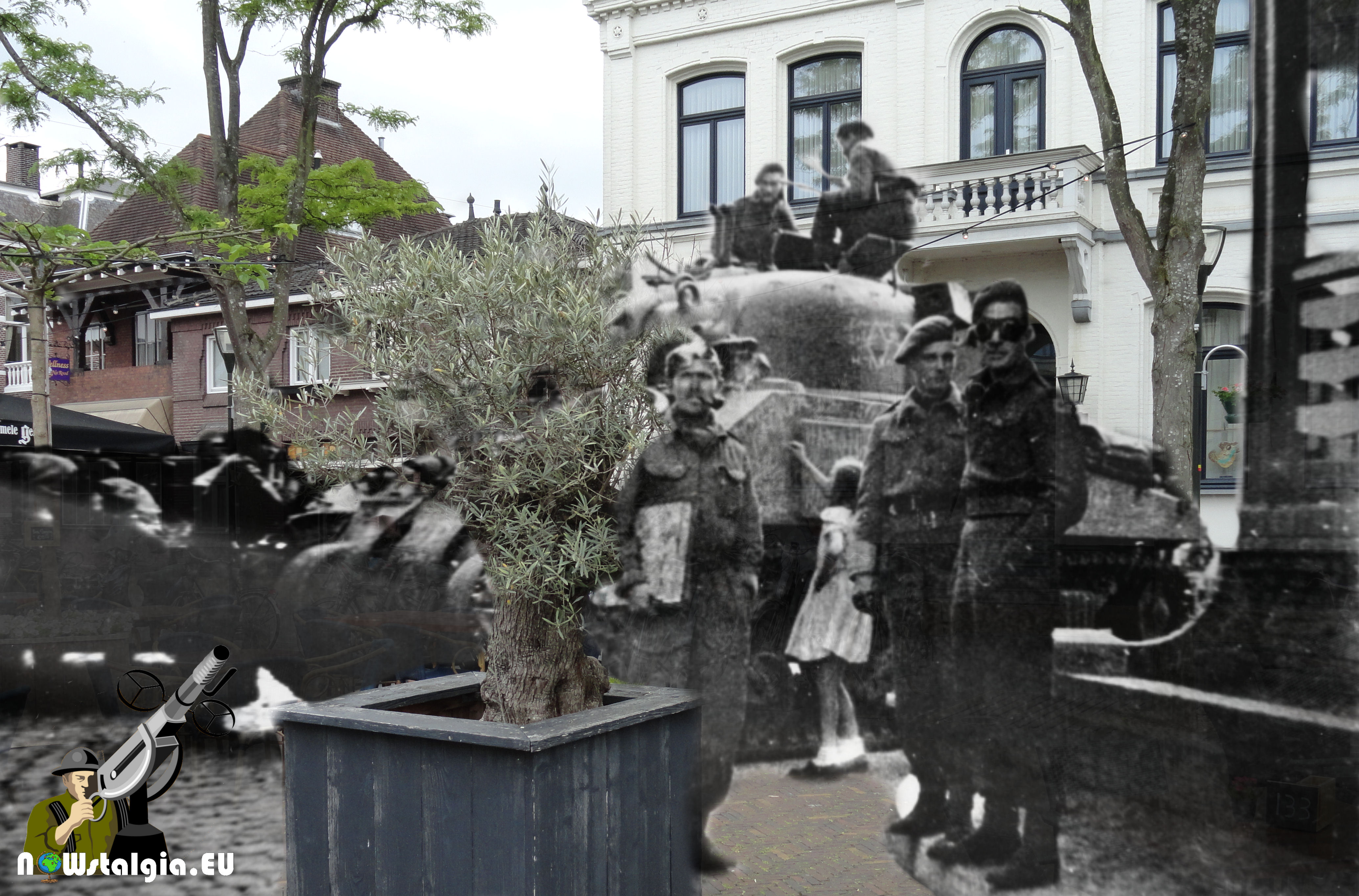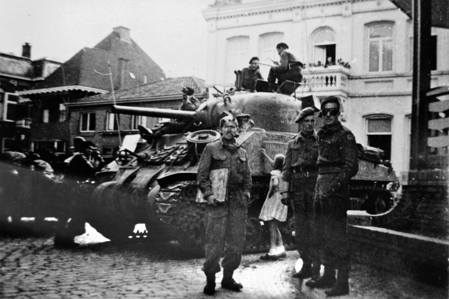 Panzer Units from the British third Royal Tank regiment taking a break at the Heuvel in the center of Geldrop, 21 September 1944.