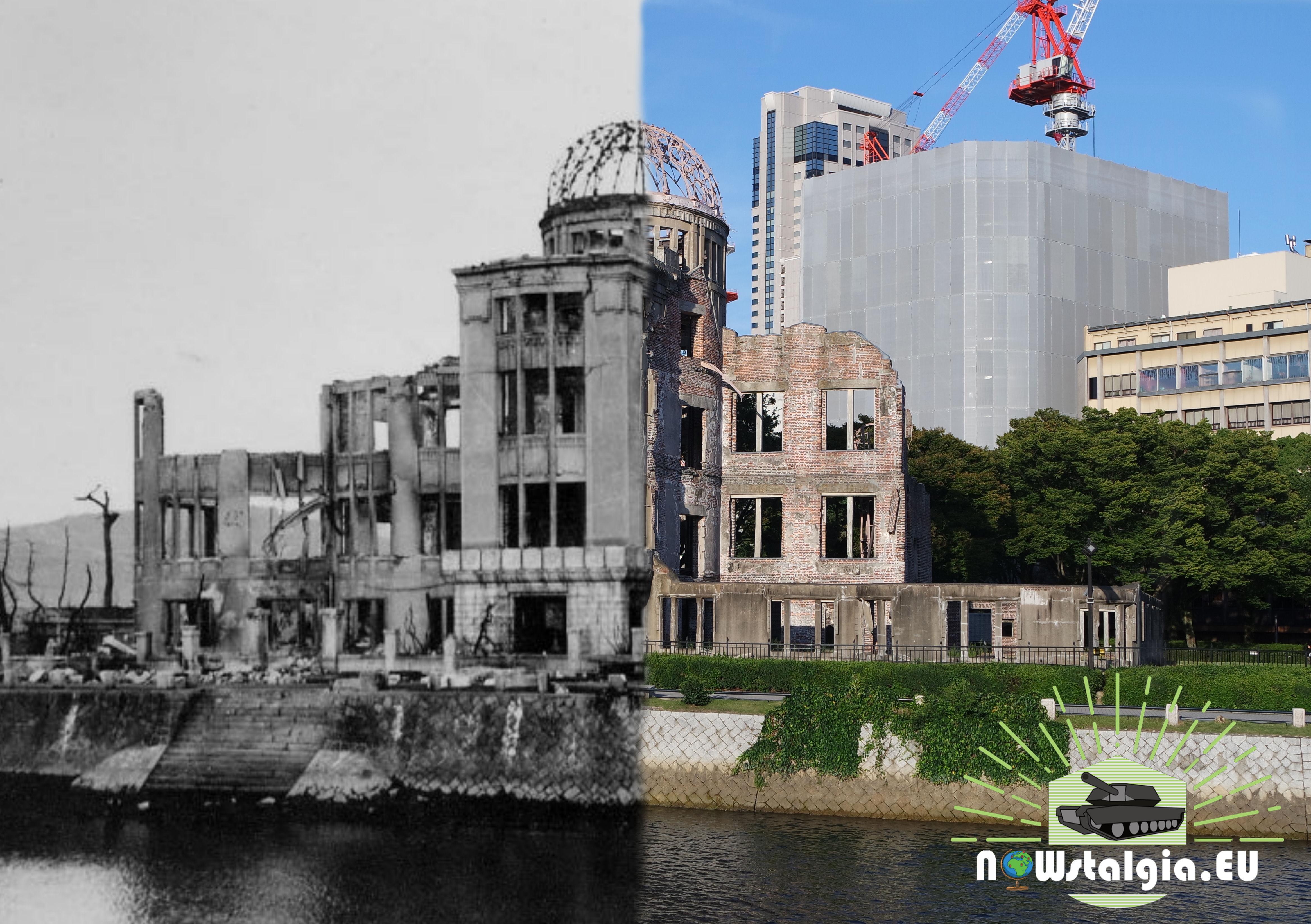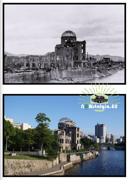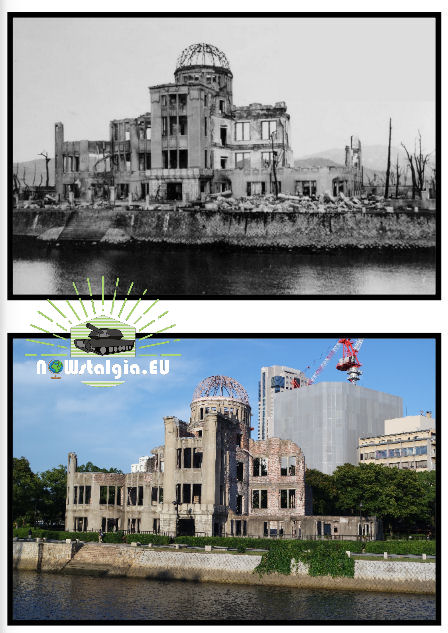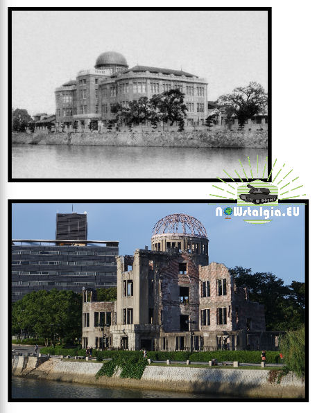 The Genbaku Dome before, after the atomic bomb at Hiroshima on 6 August 1945 and also during 2015.