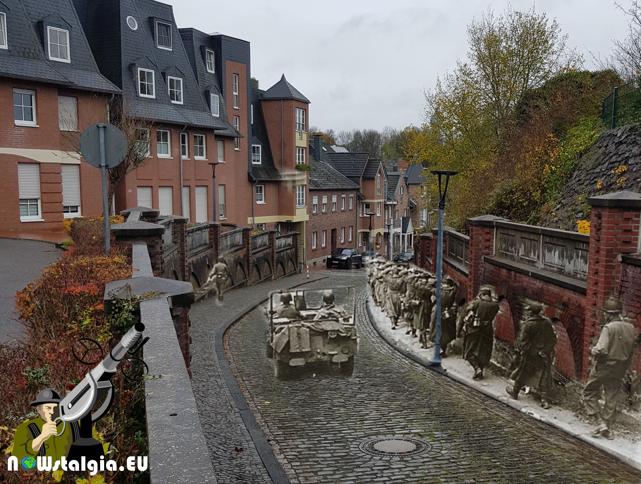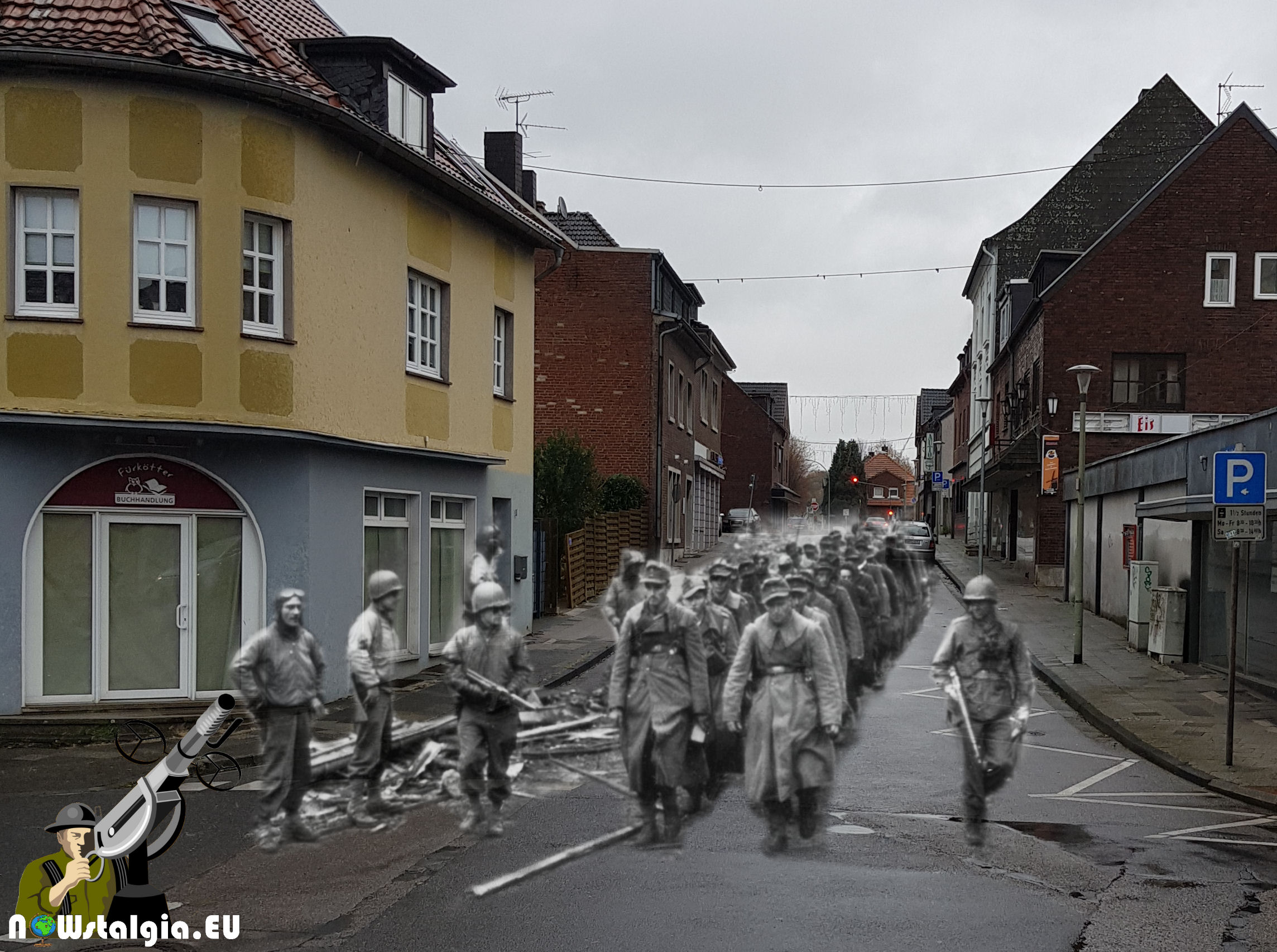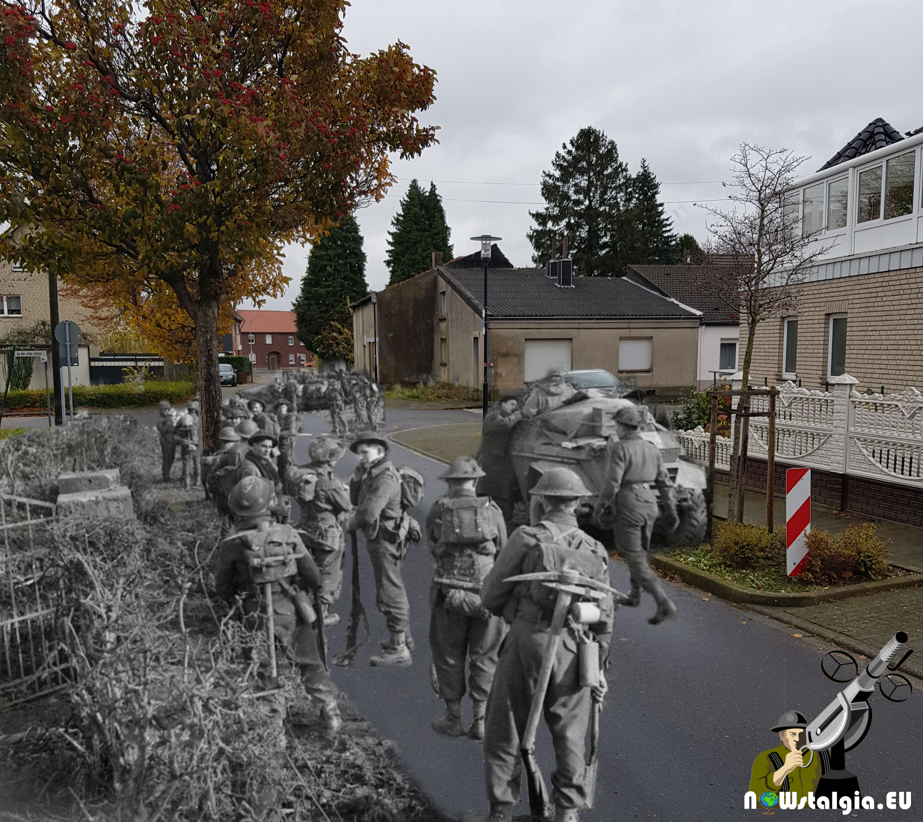 The battle for Übach-Palenberg 1944/45: American tanks on October 4th, 1944 at the Frankenstrasse train crossing. The place changed much so it was really difficult to be on the same spot.