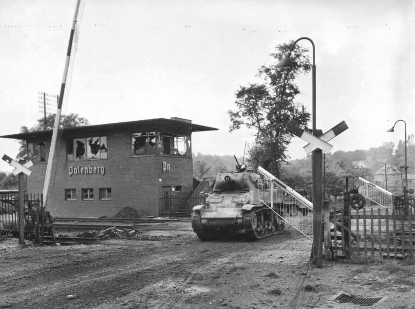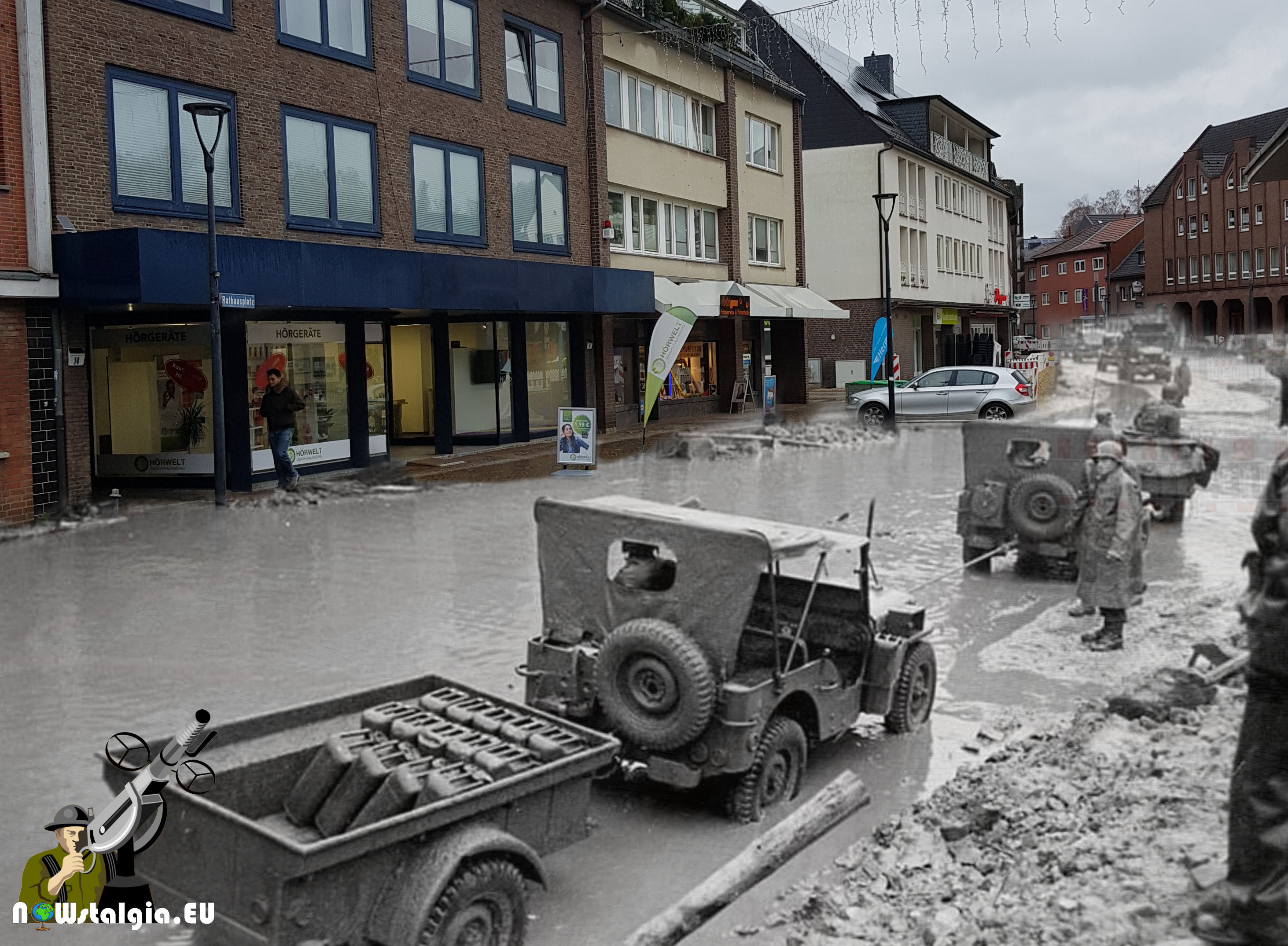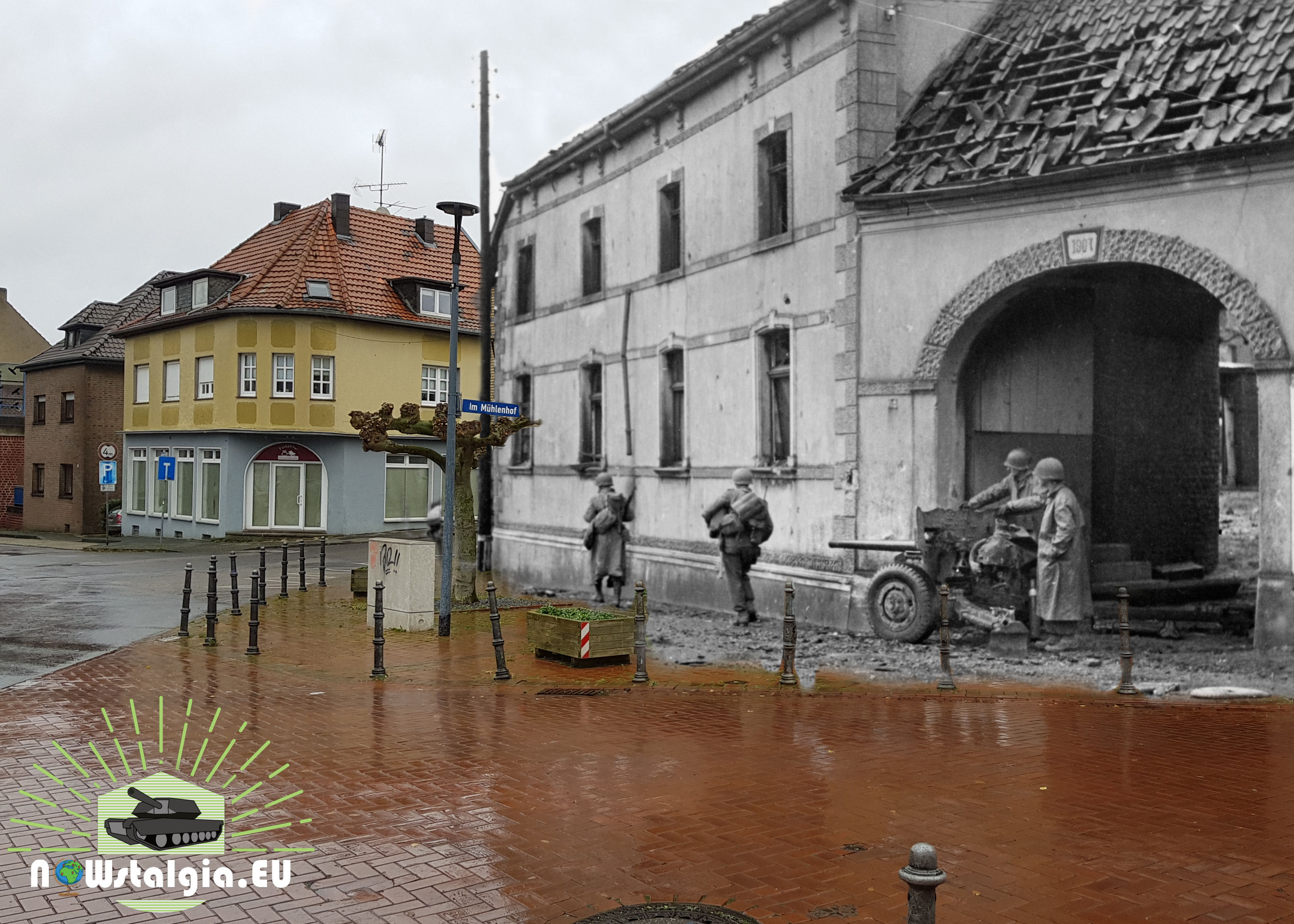 The battle for Übach-Palenberg 1944/45: American tanks on October 4th, 1944 at the Frankenstrasse train crossing. The place changed much so it was really difficult to be on the same spot.