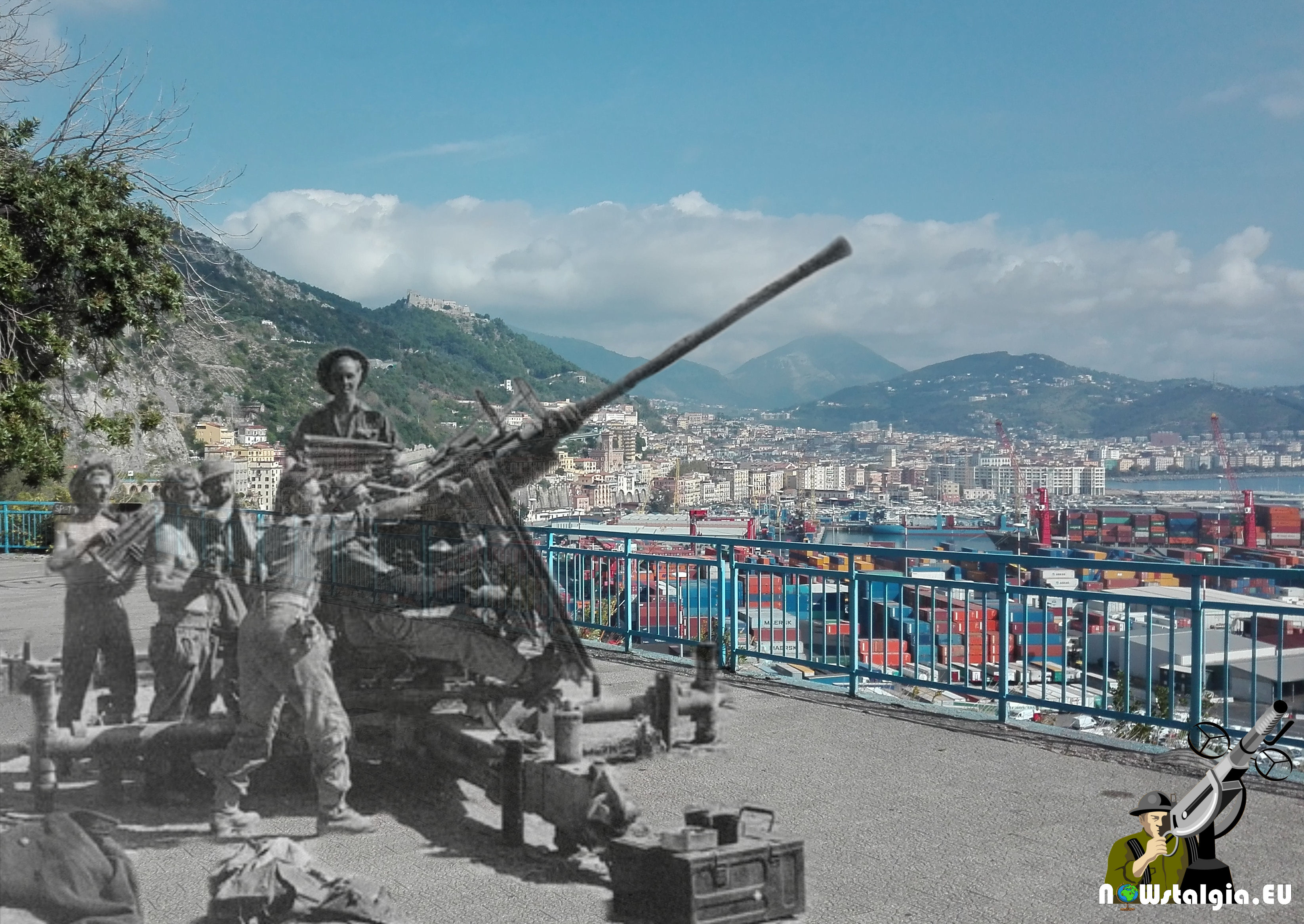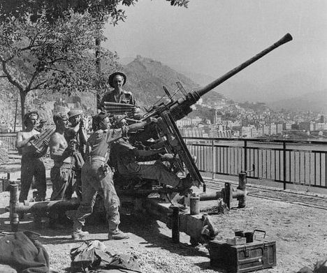 British AA Gun on the road between Salerno and Vietri Sul Mare in 1943 during Operation Avalanche. This is the starting point of the beautiful Amalfi Coastline.