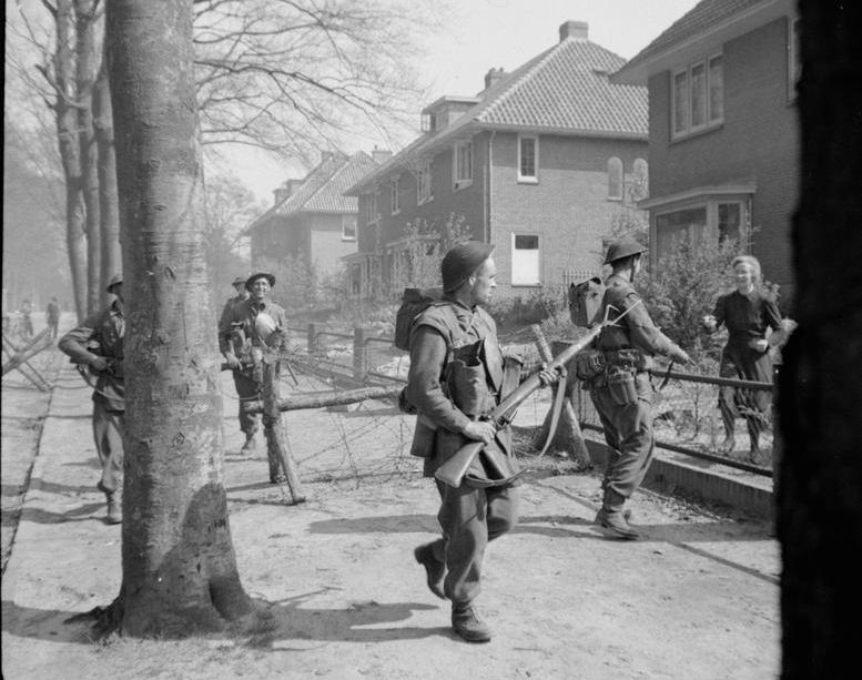 Infantry of the 11th Royal Scots Fusiliers, 49th (West Riding) Division, searching houses in Ede in Holland, 17 April 1945.