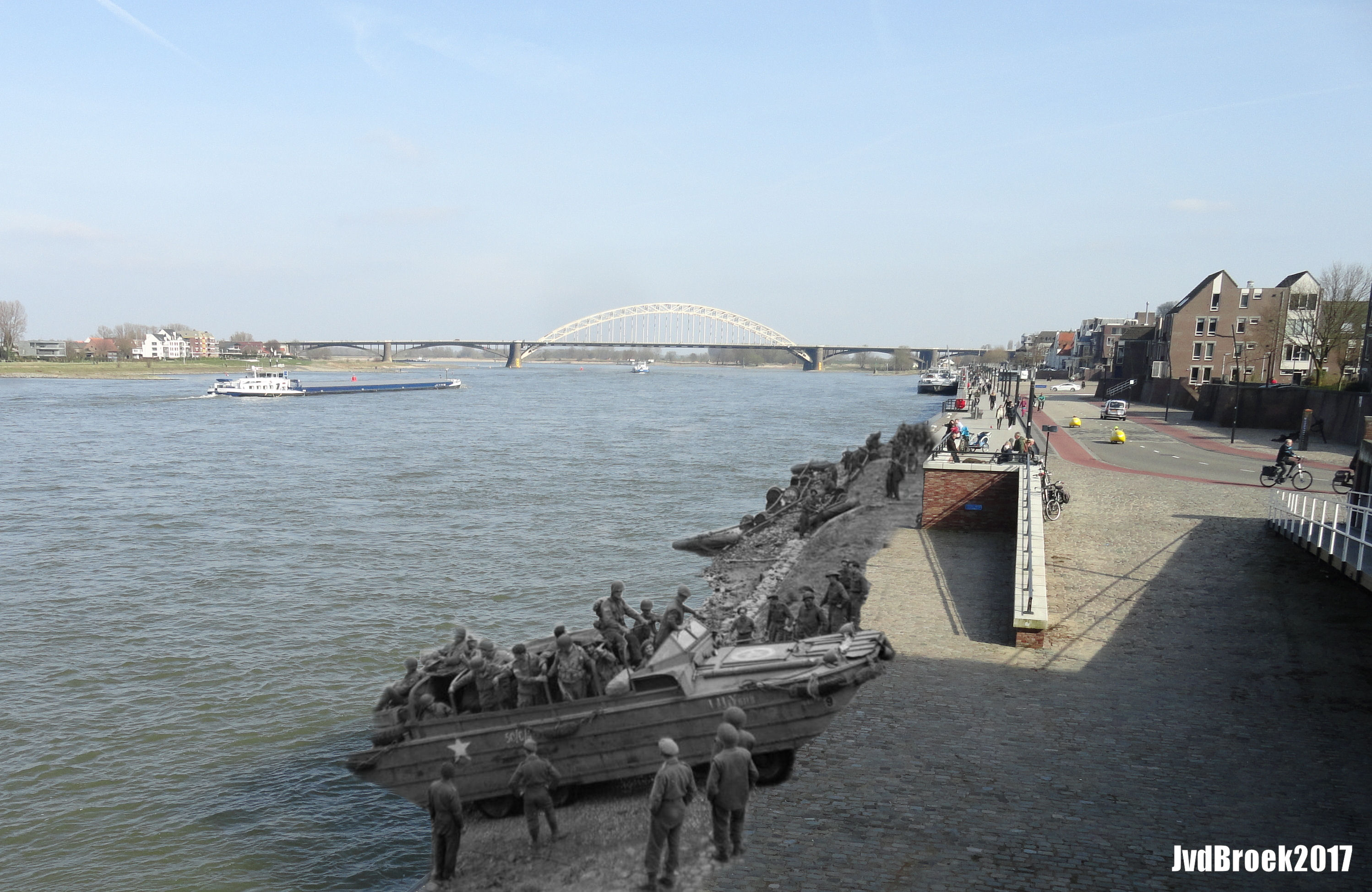 A British DUKW carries supplies and American paratroopers across the Waal river at Nijmegen, 30 September 1944.