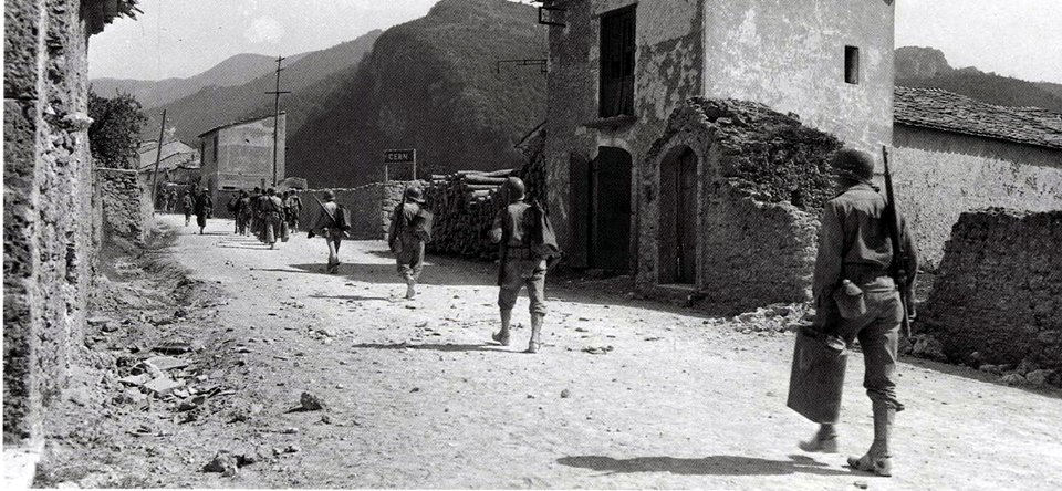 Operation Avalanche: Allied troops entering the mountain village of Acerno, Italy in 1943.