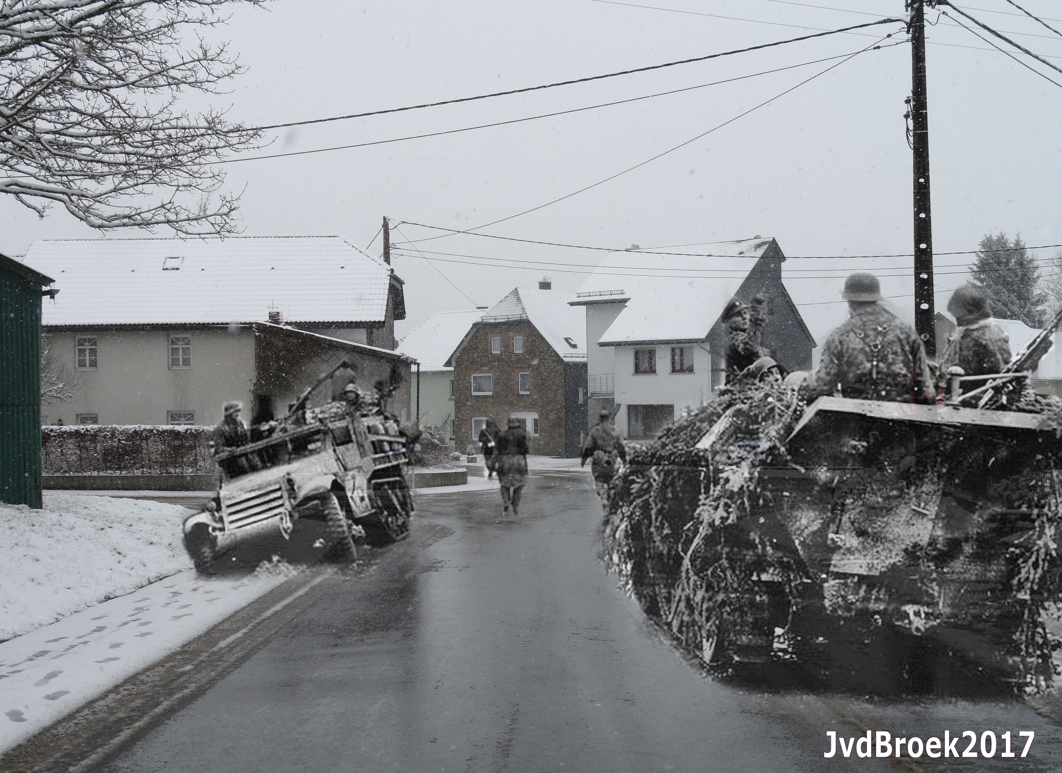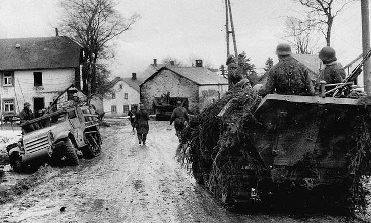 Soldiers from the Kampfgruppe Peiper in the Belgian town of Honsfeld during Ardennes Offensive, December 17, 1944