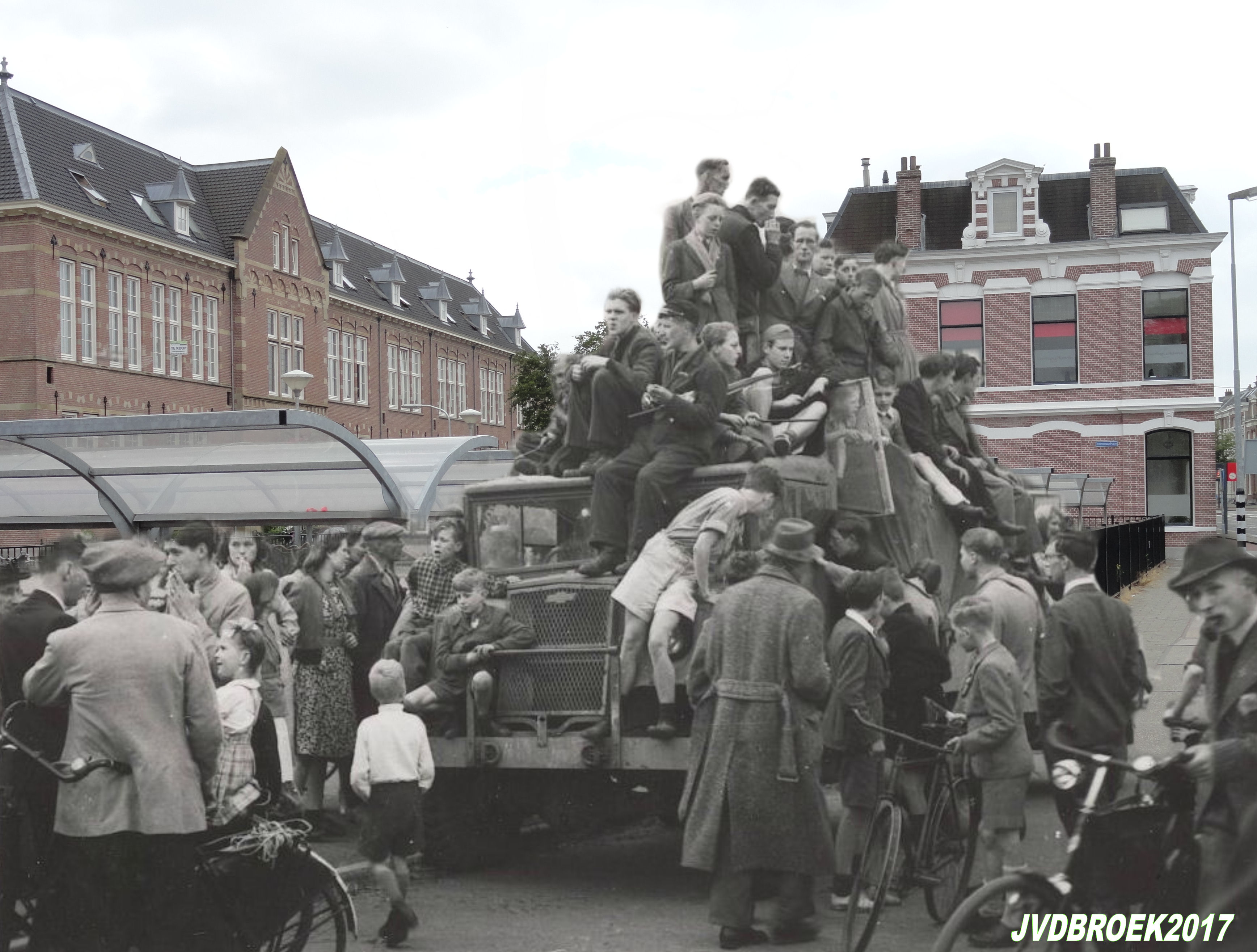 Canadian armytruck at the Zijlvest, Haarlem 8 May 1945